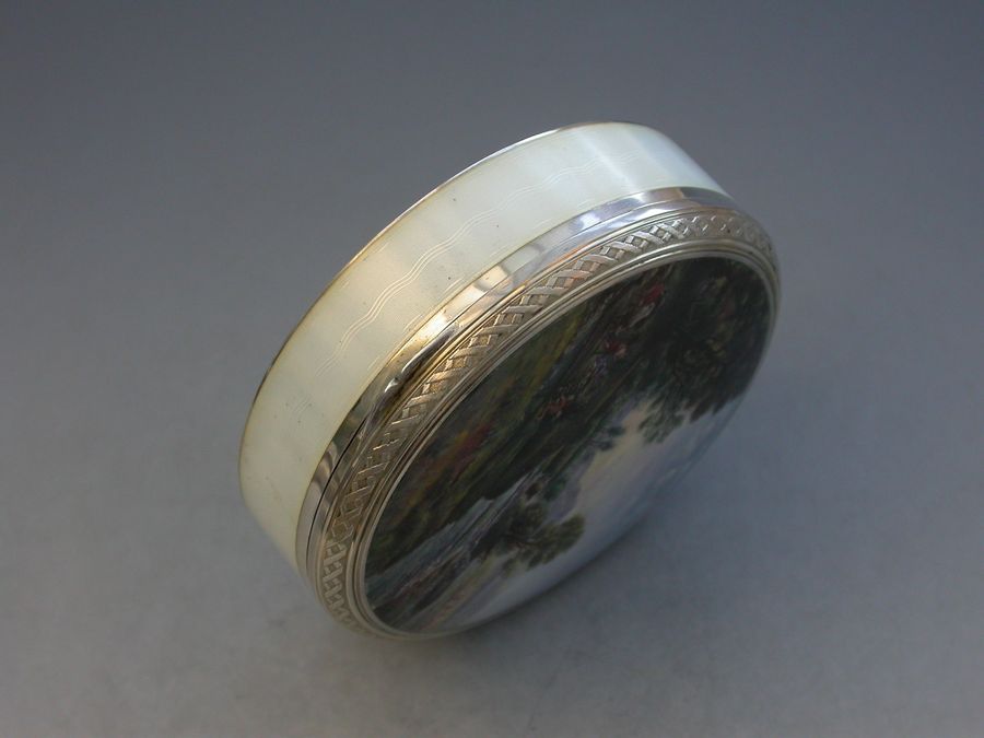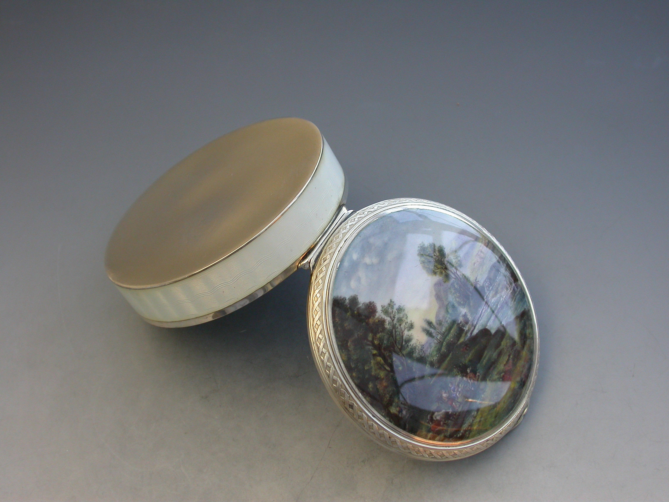 German .935 Standard Circular Silver & Enamel Box - Pastoral Scene