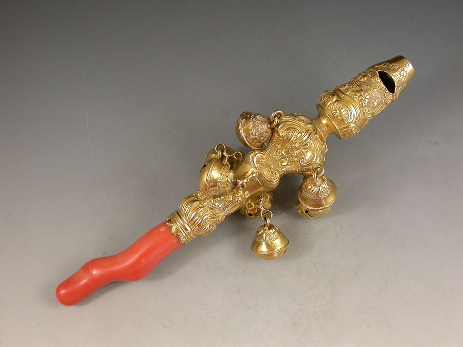 George II 22 Carat Gold Rococo Baby's Rattle 'Crested'