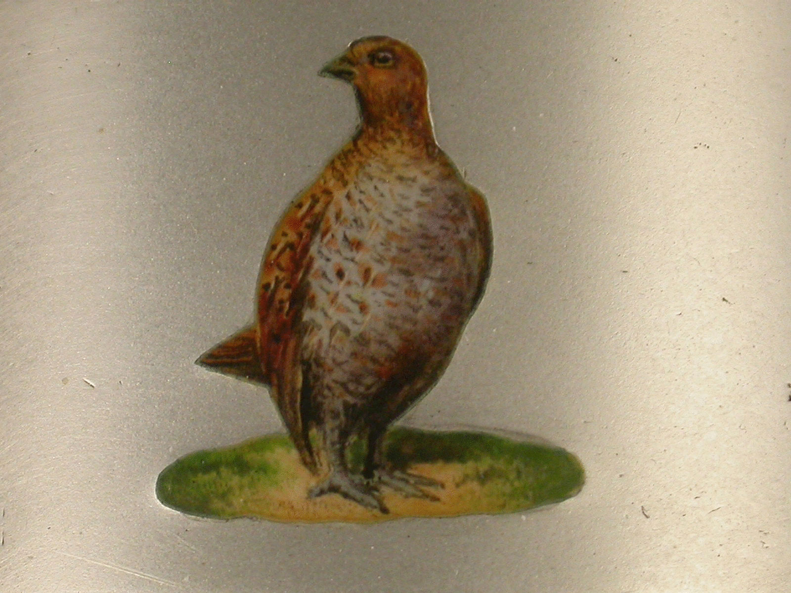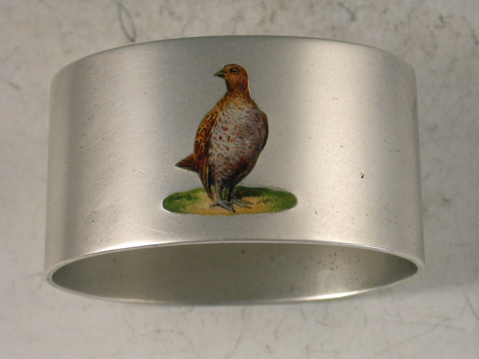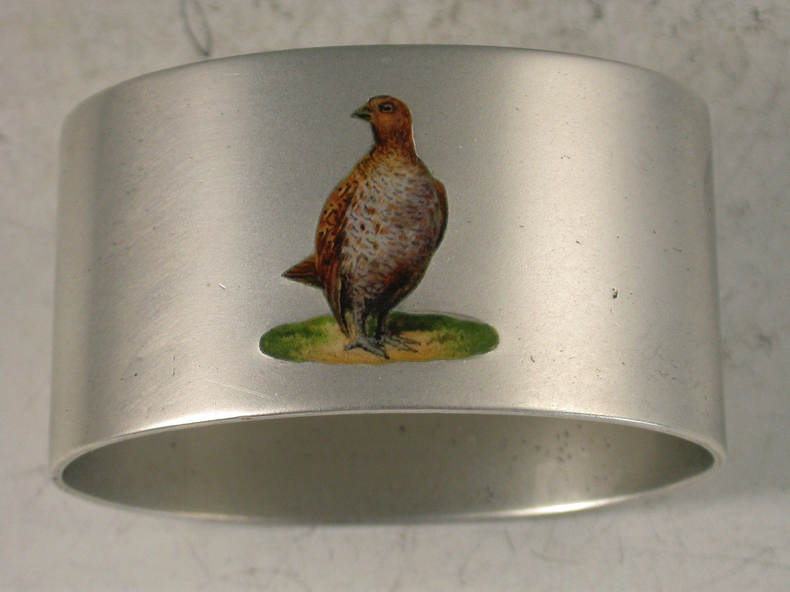 Heavy George V Silver Napkin Ring Enamelled with a Grouse