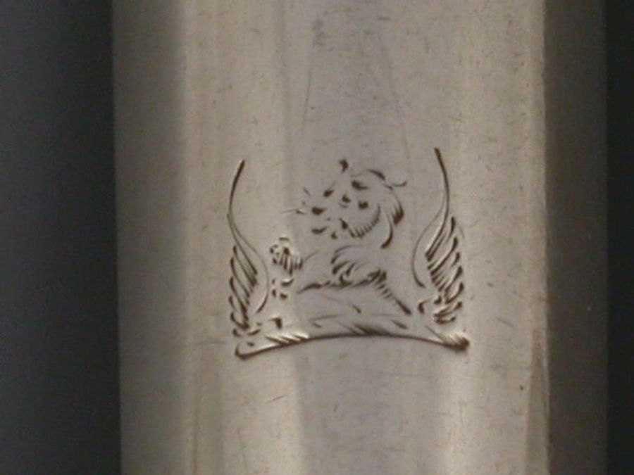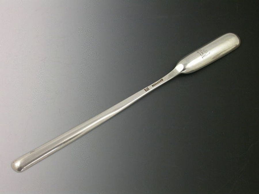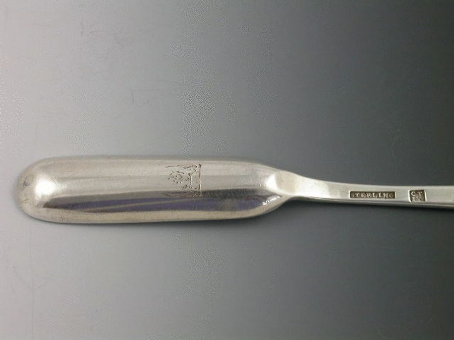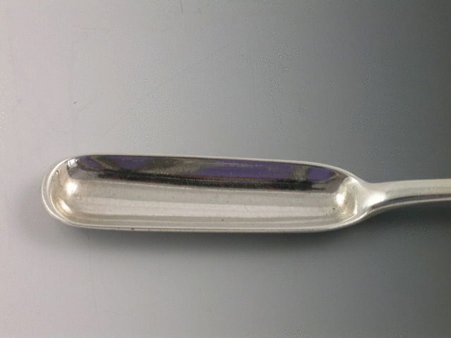 A very fine and rare George III Irish Provincial silver Marrow Scoop of typical Irish form with tapering bowl to the handle. Engraved with contemporary crest to the bowl. Marked STERLING and makers mark.