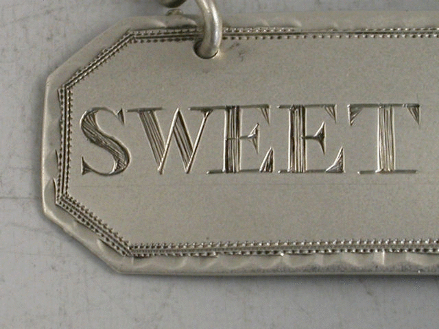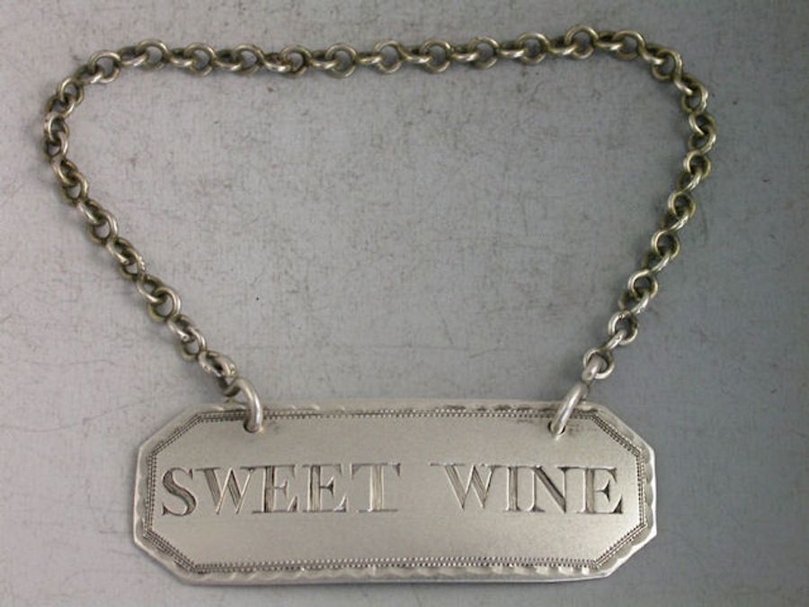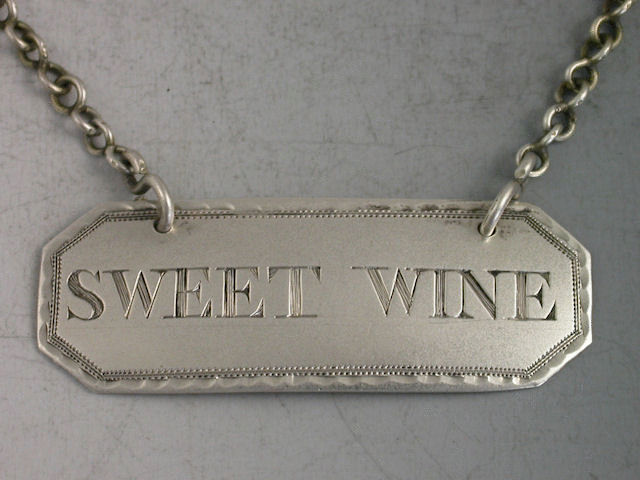 A rare Irish Provincial silver Wine Label of narrow rectangular form with cut-corners and bright-cut engraved border, incised for SWEET WINE.