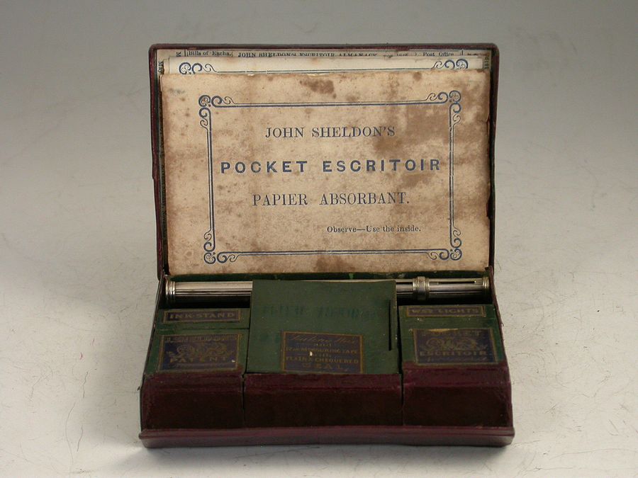 Sheldon described this pocket Writing Desk in his adverts as ""The Cabinet of the Million and Wonder of the Age"". It contained all the essentials for writing and could be easily transported in a gentleman's pocket or a ladies handbag.