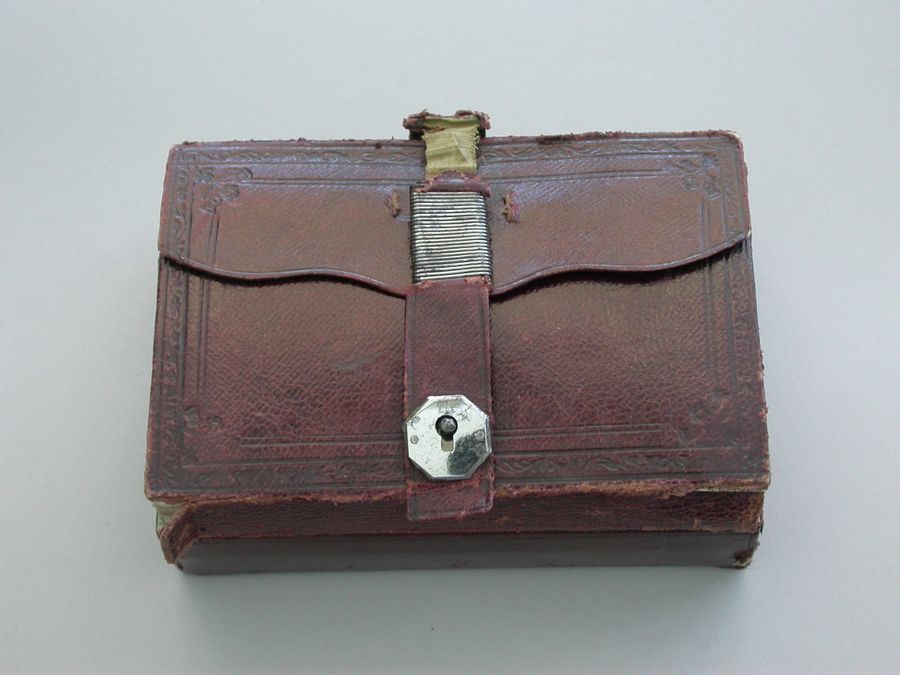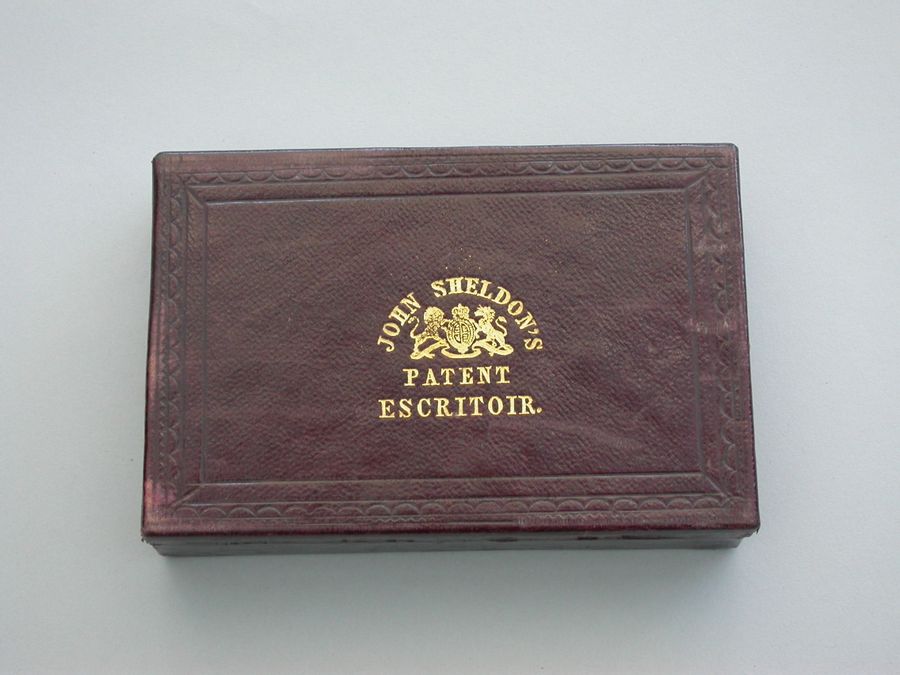 Sheldon registered the original design for the Patent Pocket Escritoir on 16th November 1843. Registered Design Number:66. This example dates from 1853.