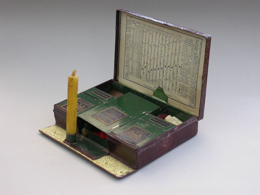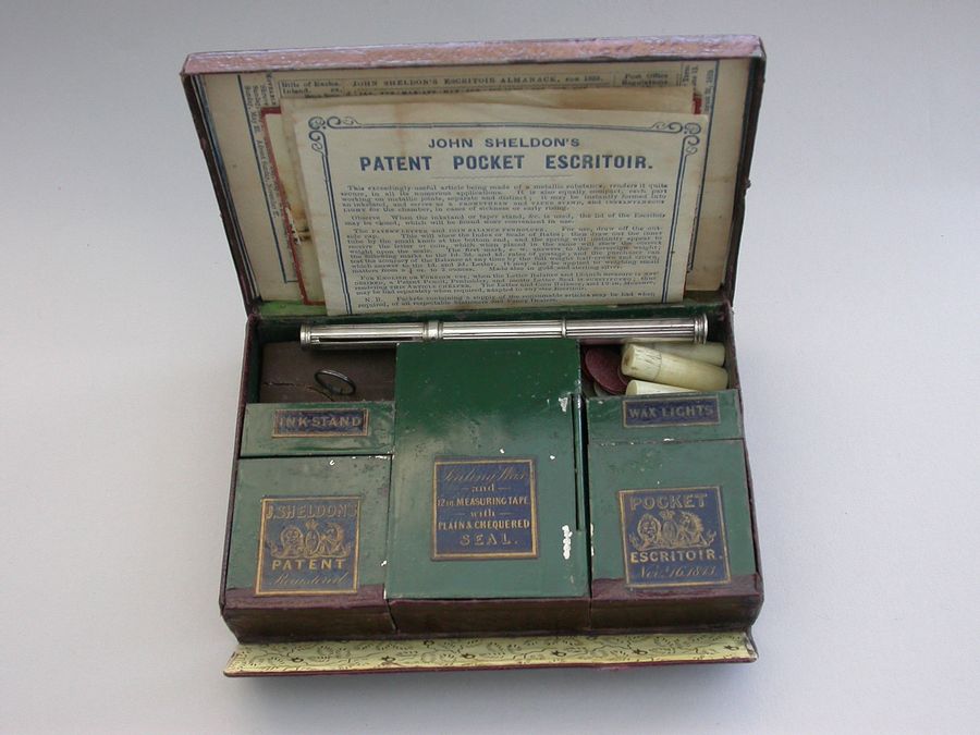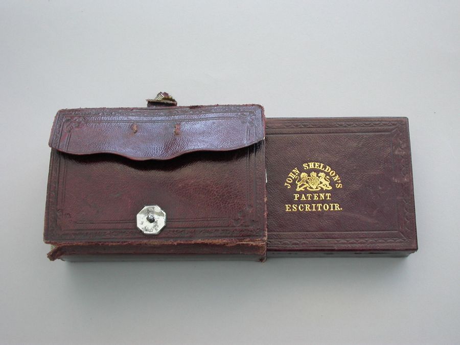 Sheldon described this pocket Writing Desk in his adverts as ""The Cabinet of the Million and Wonder of the Age"". It contained all the essentials for writing and could be easily transported in a gentleman's pocket or a ladies handbag.