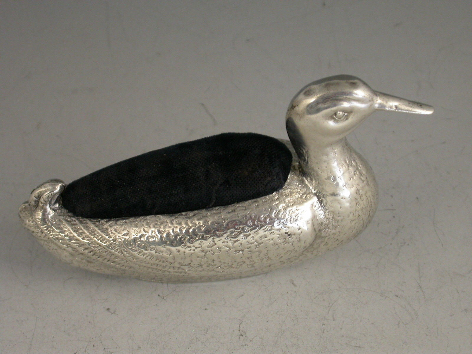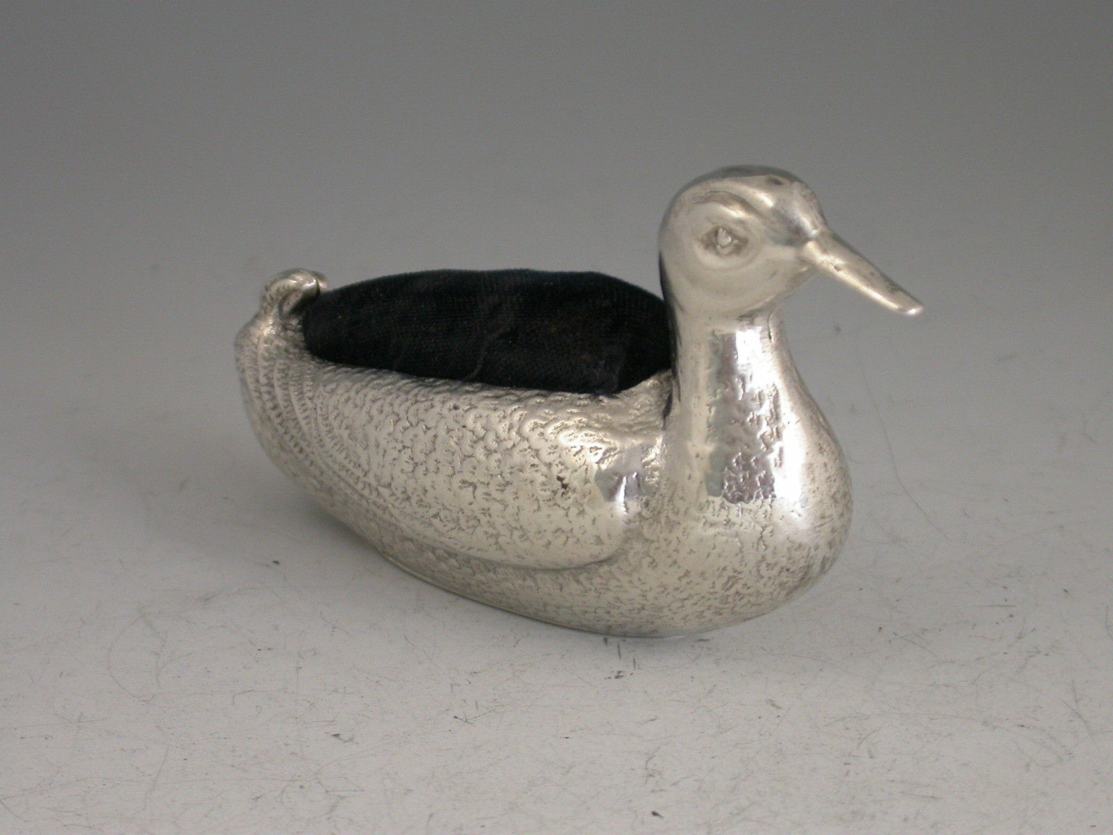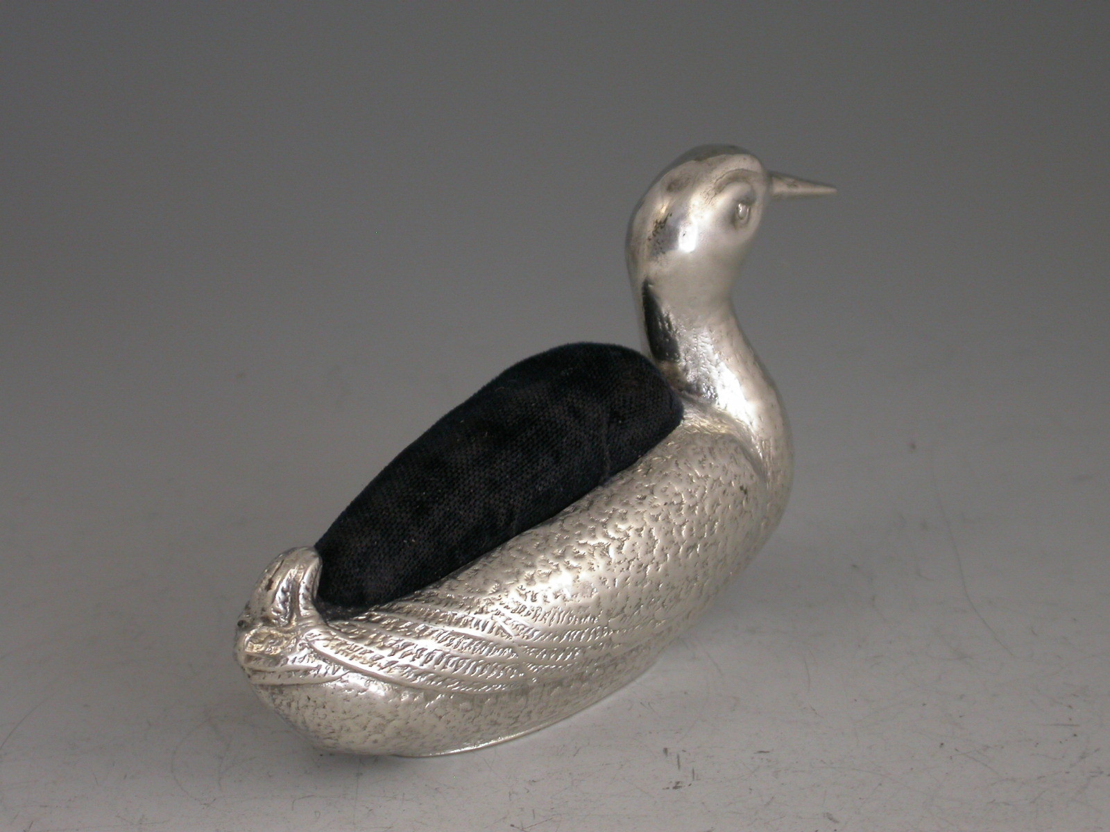 Large Edwardian Silver Duck Pin Cushion