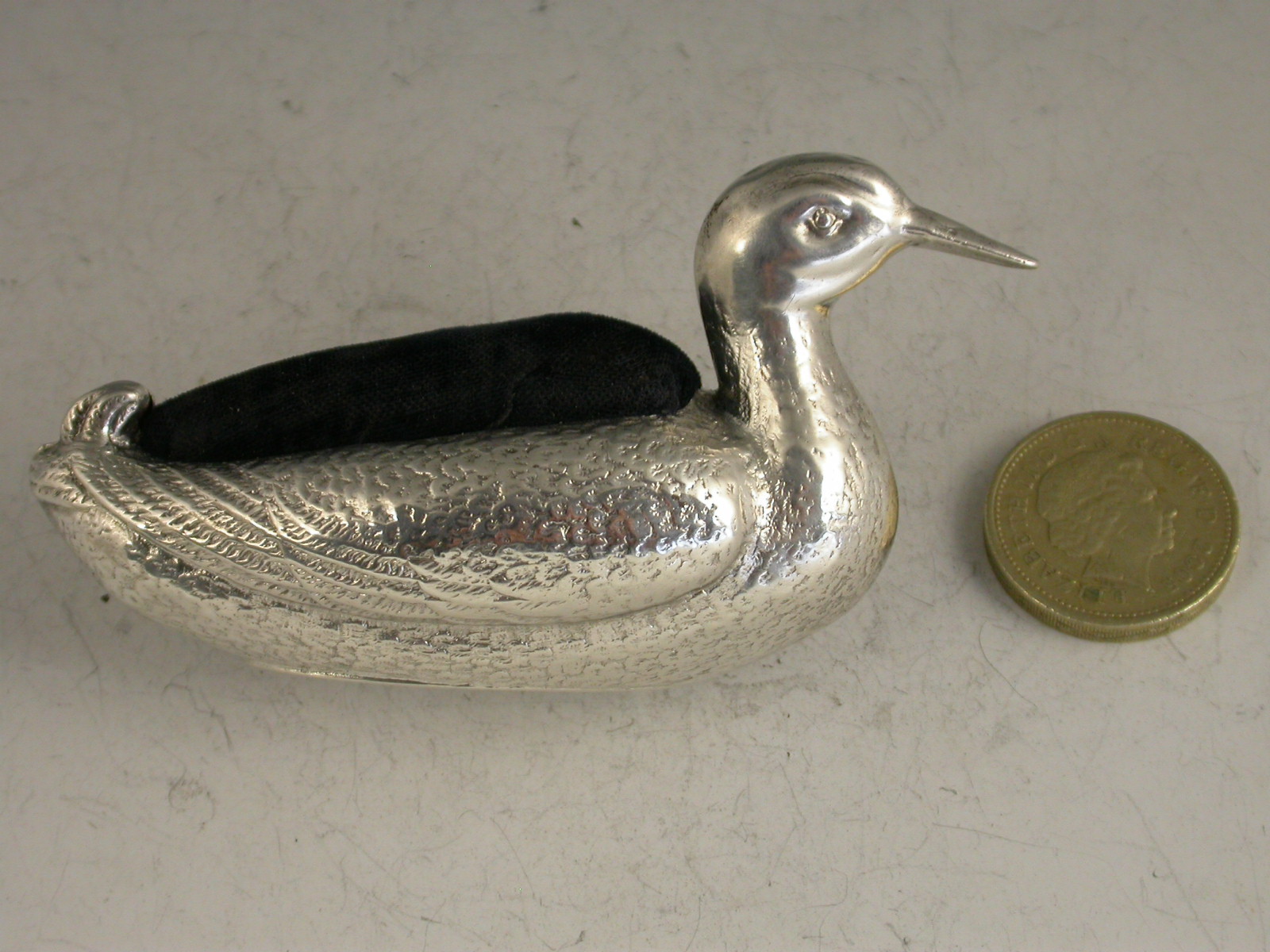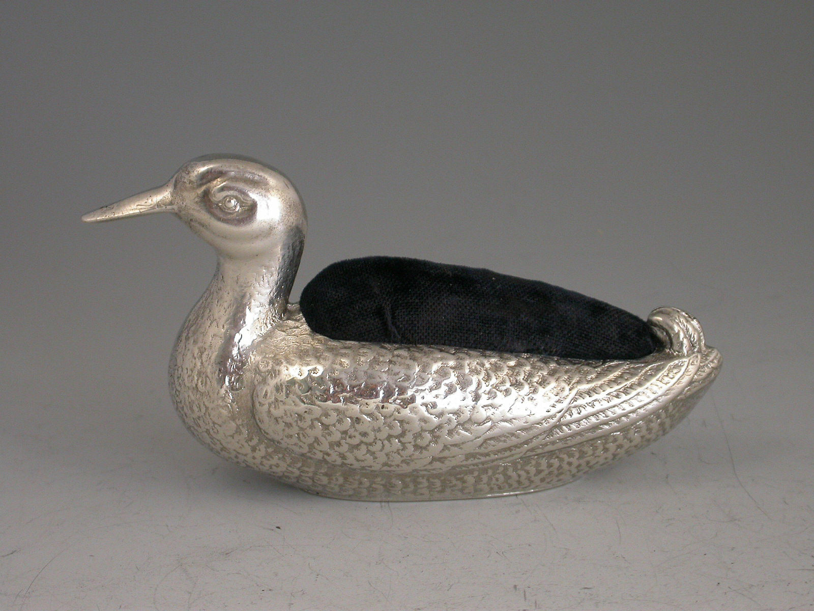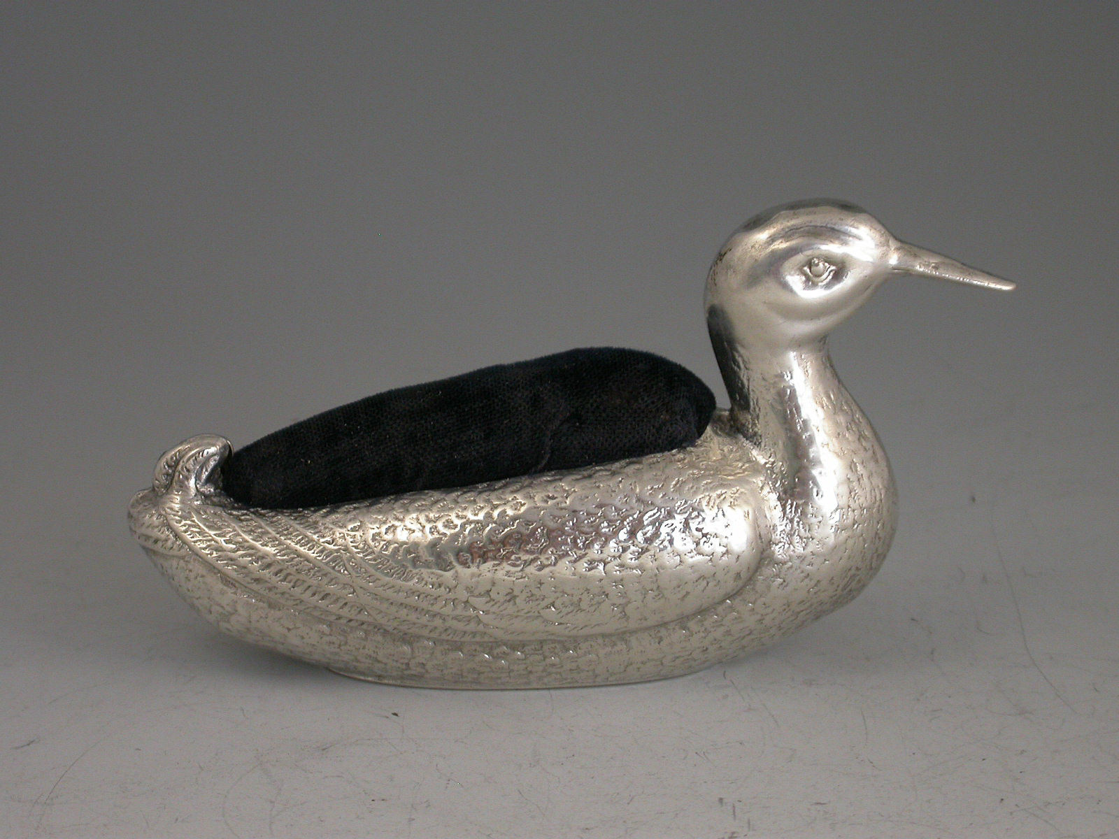 Large Edwardian Silver Duck Pin Cushion