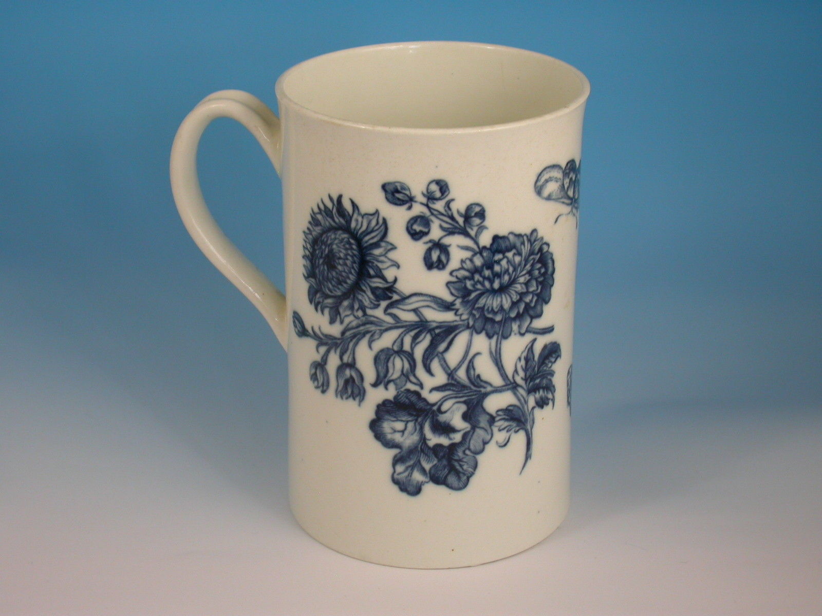 A fine large First Period Worcester cylindrical Mug with grooved strap handle, printed in under-glaze blue with 'The Natural Sprays Group'. IIC7 in BFS