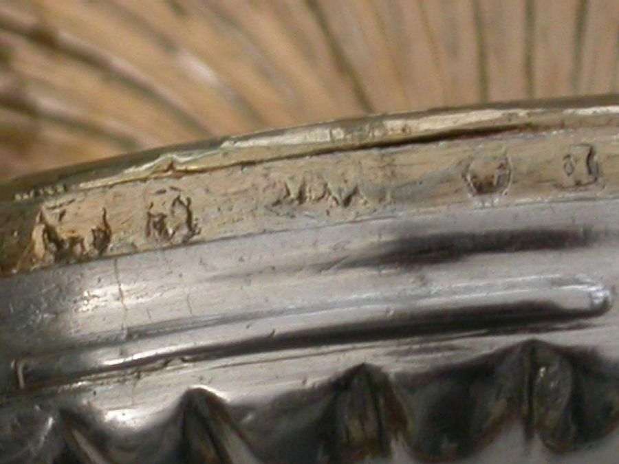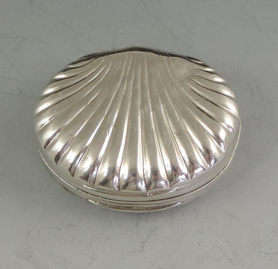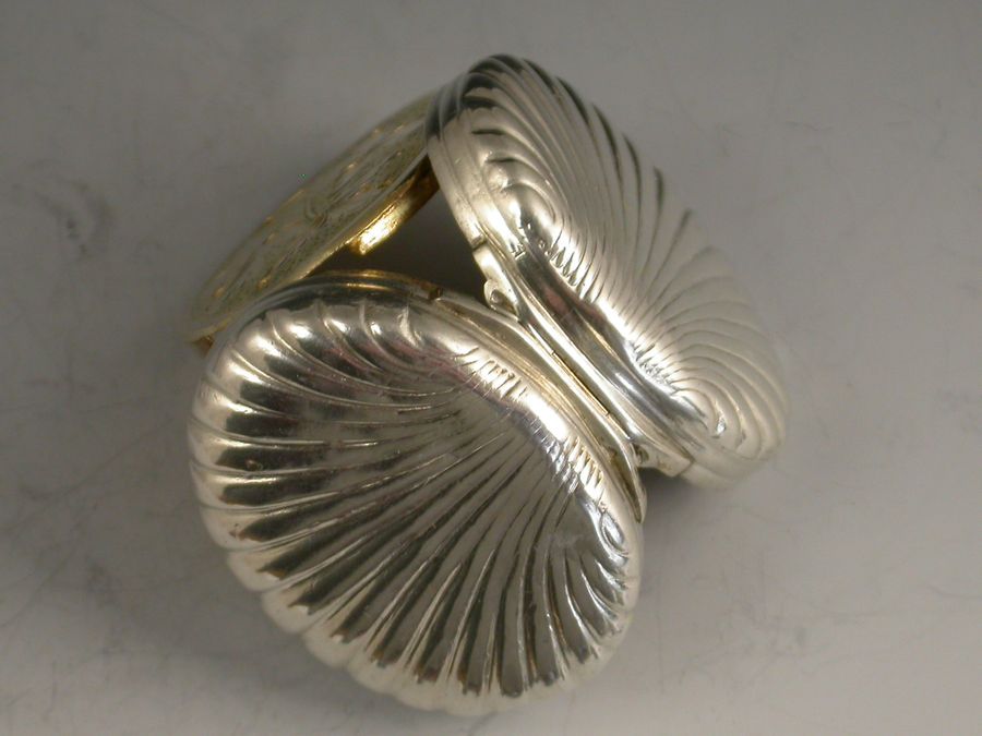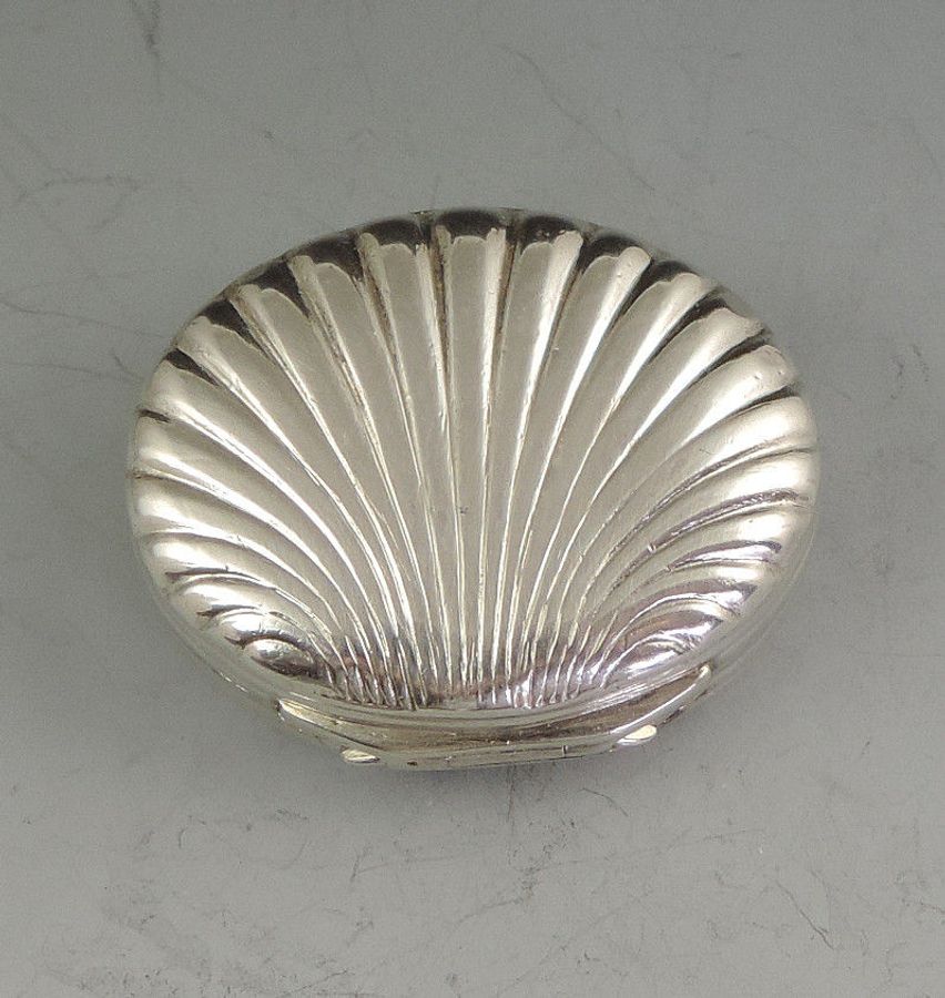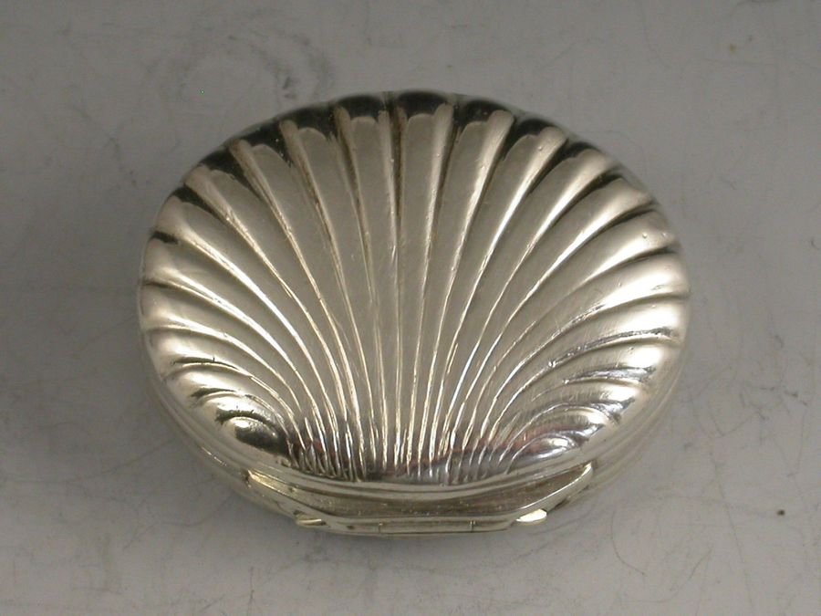 A good George III silver Vinaigrette of large oval raying shell form, silver gilt interior with unusual lily flower decoration to the pierced grille.
