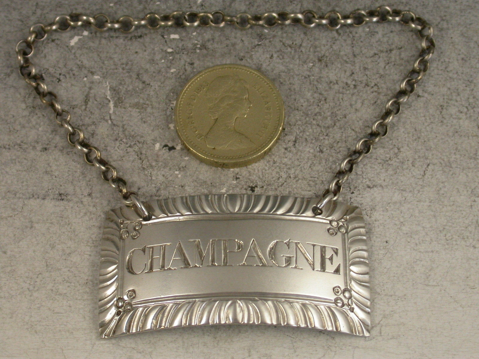 Large George IV Antique Silver Wine Label 'Champagne'