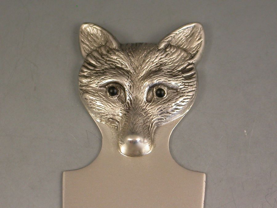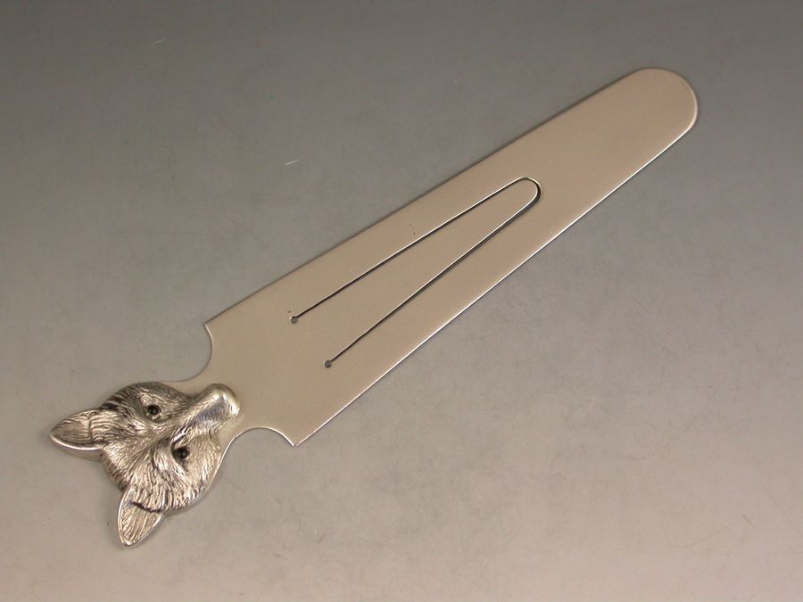 A fine quality large and heavy gauge George V novelty silver Bookmark, the terminal cast as a Foxes head set with black glass eyes.