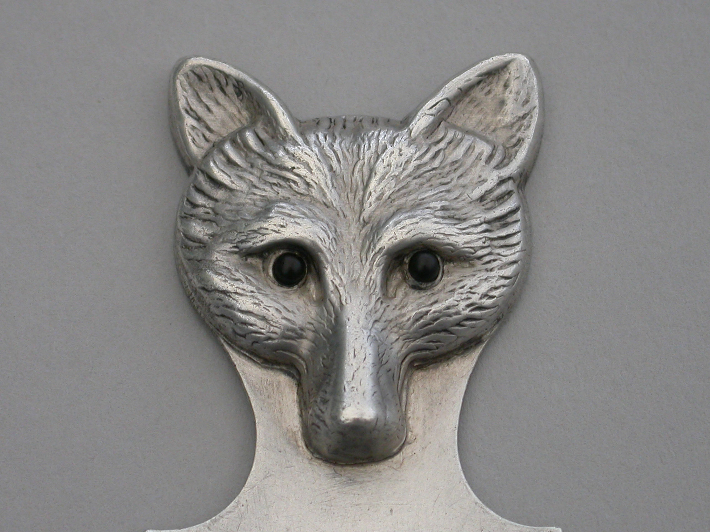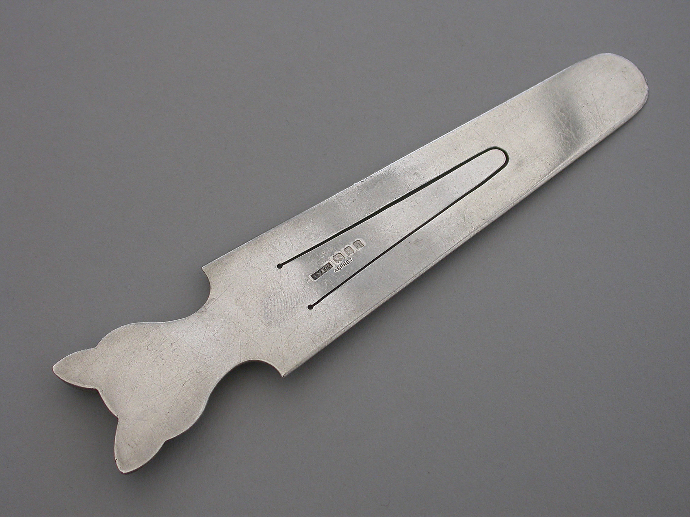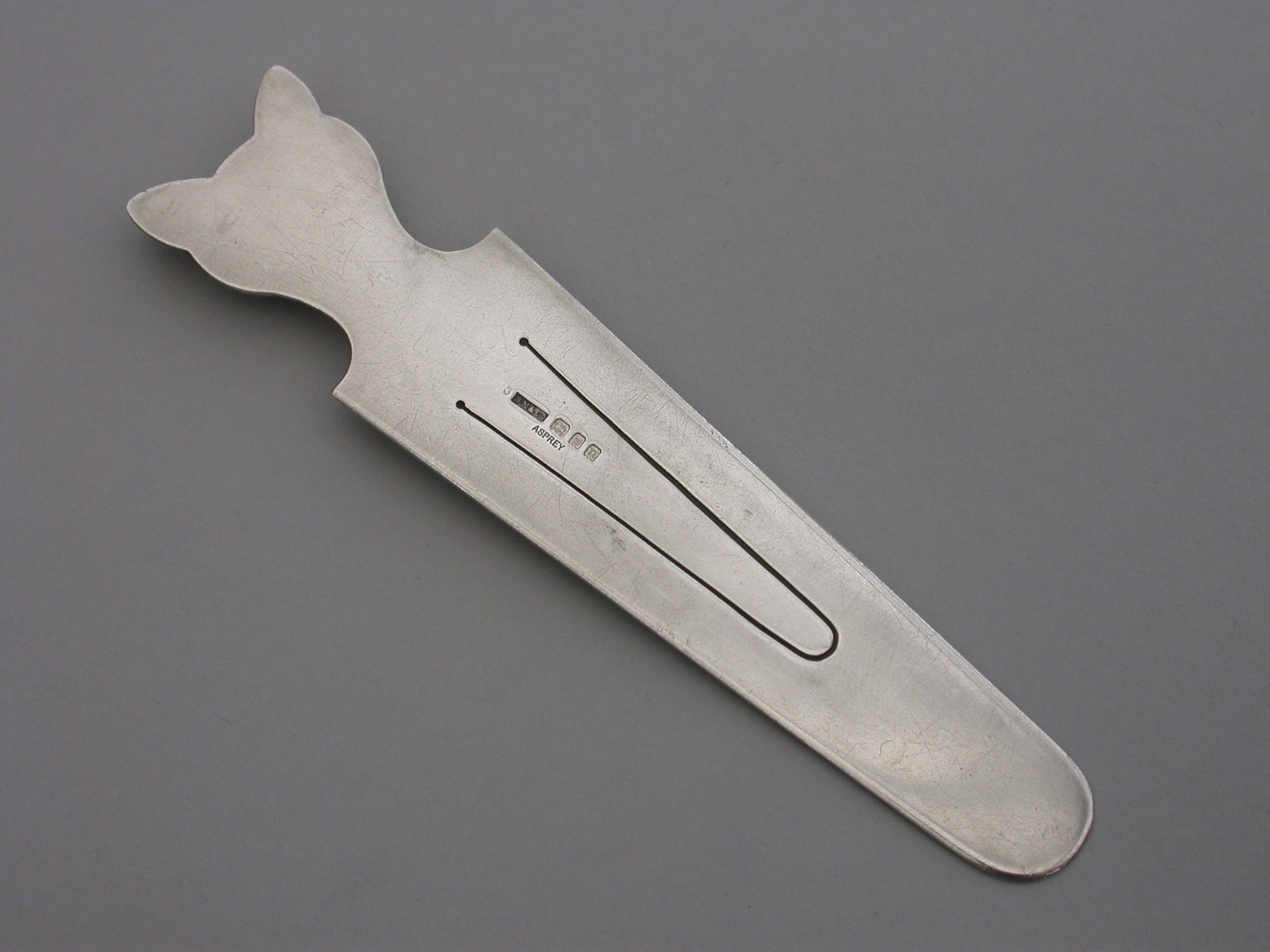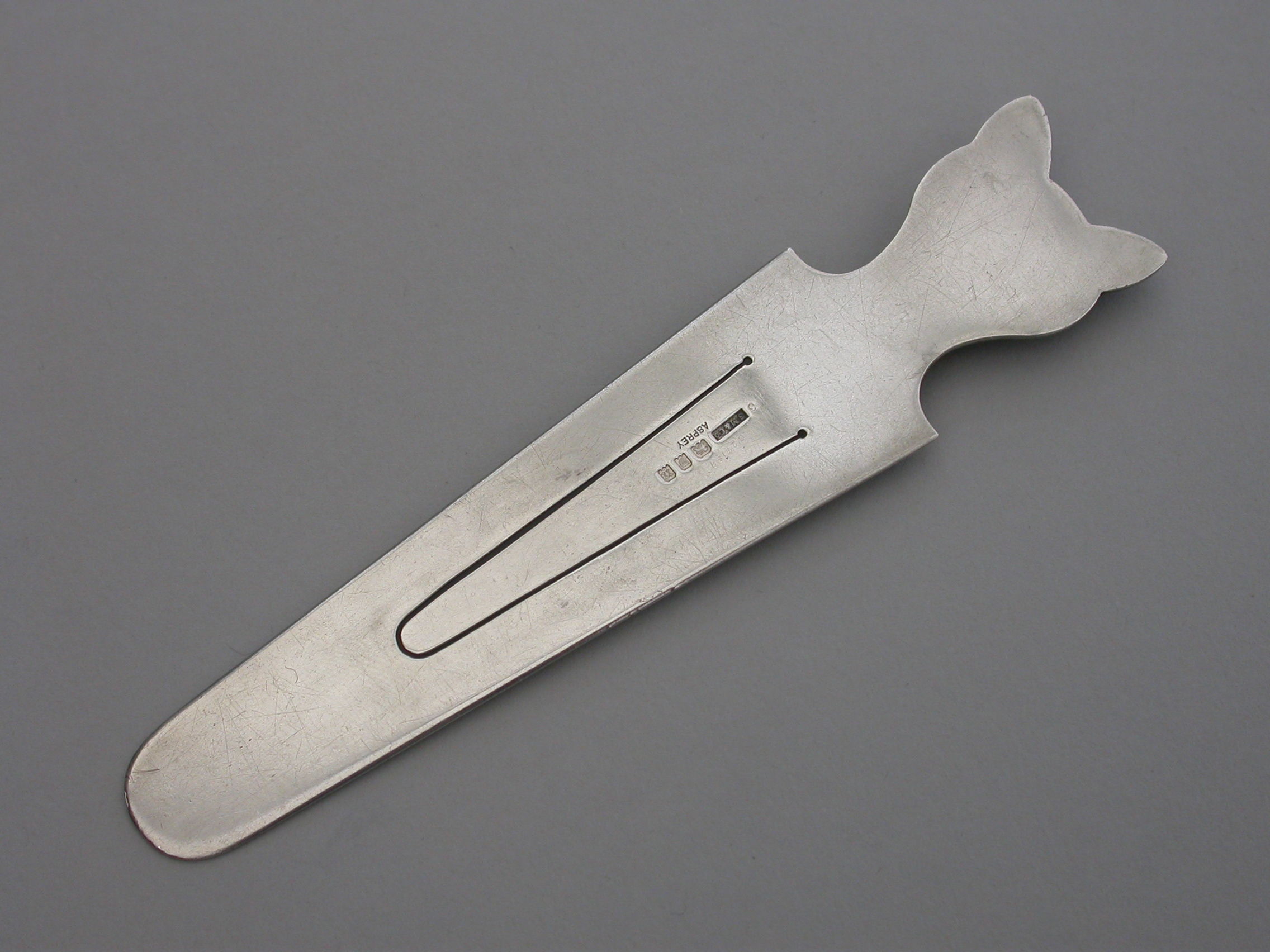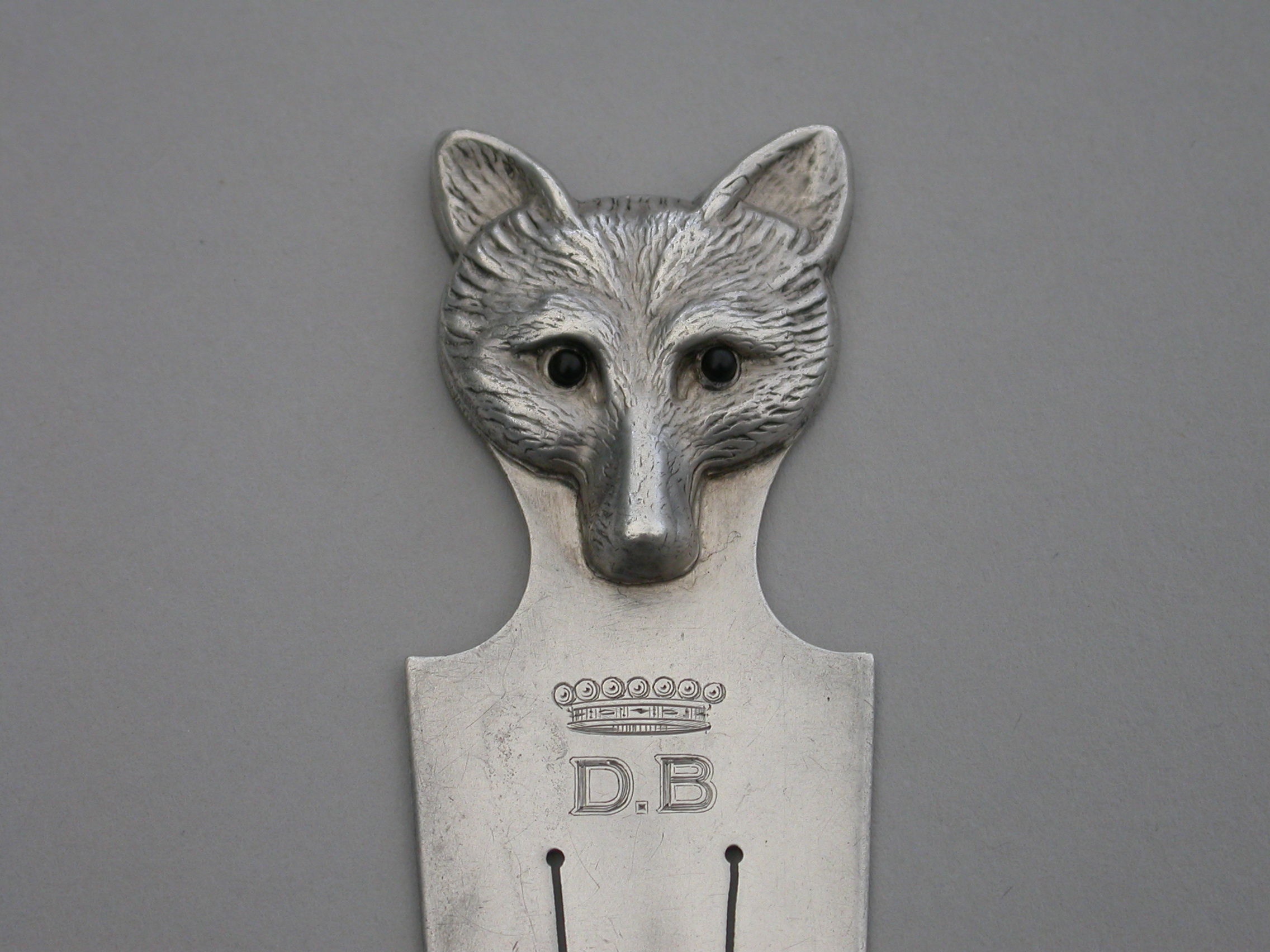 A fine quality large and heavy gauge George V novelty silver Bookmark, the terminal cast as a Foxes head set with ruby glass eyes. The blade engraved with a Viscounts Coronet above the initials - 'D.B'