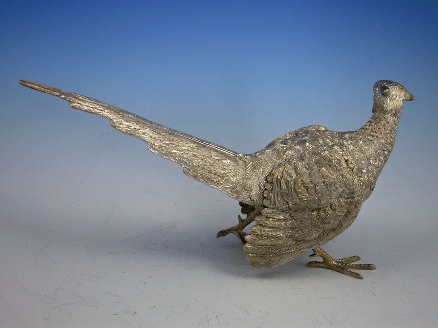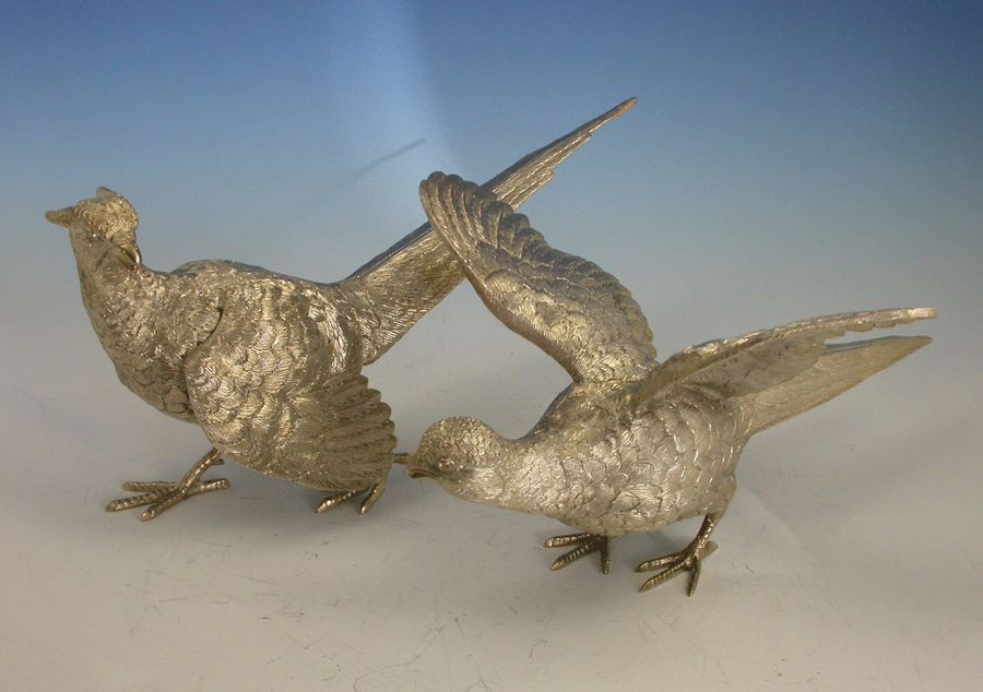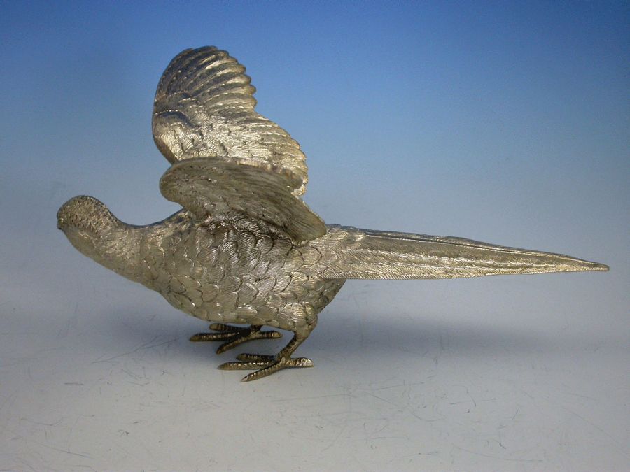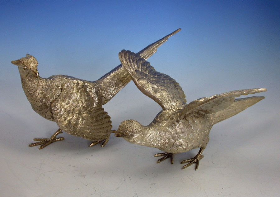 Large Pair Modern Millennium Hallmarked Silver Pheasants