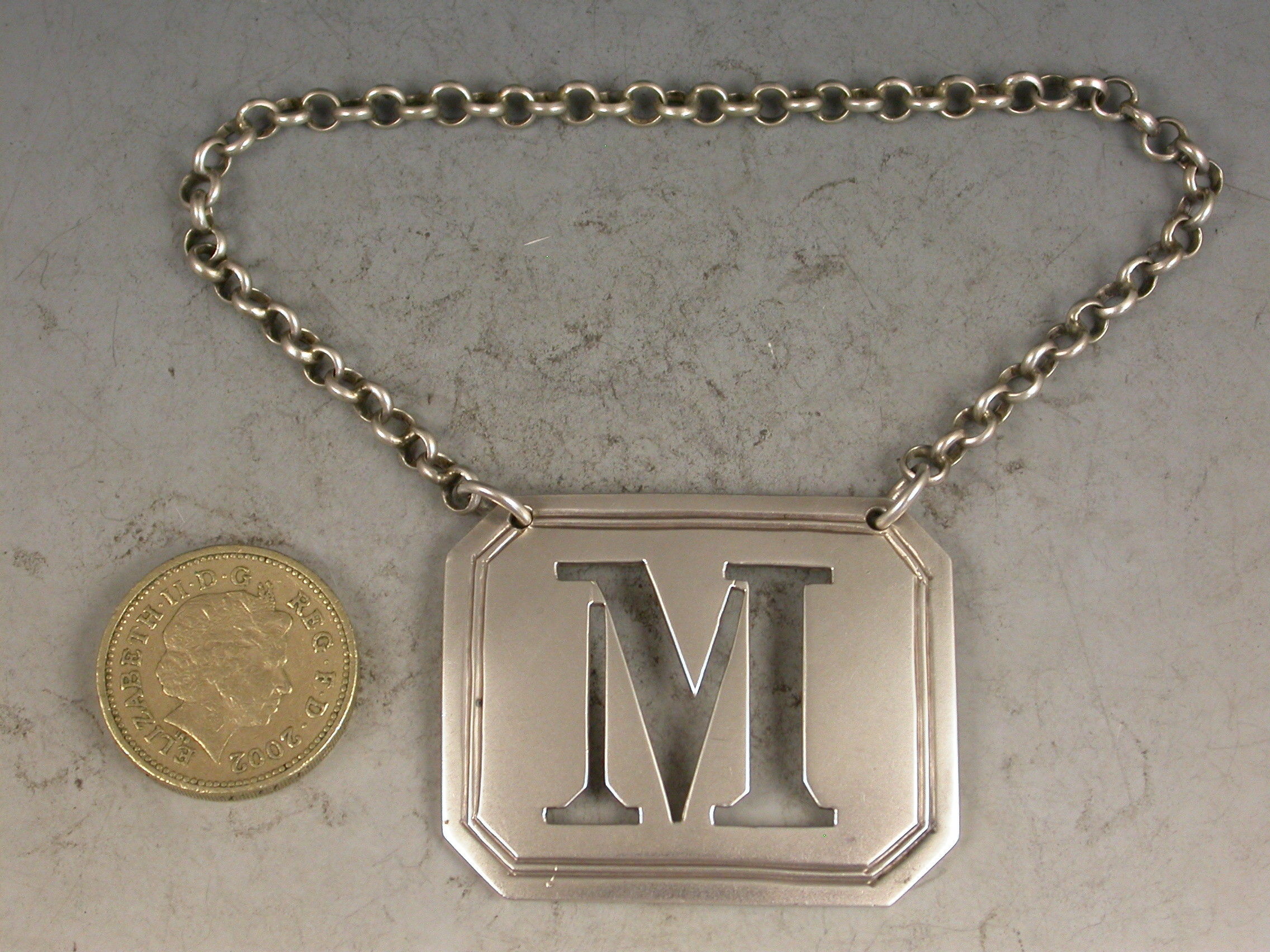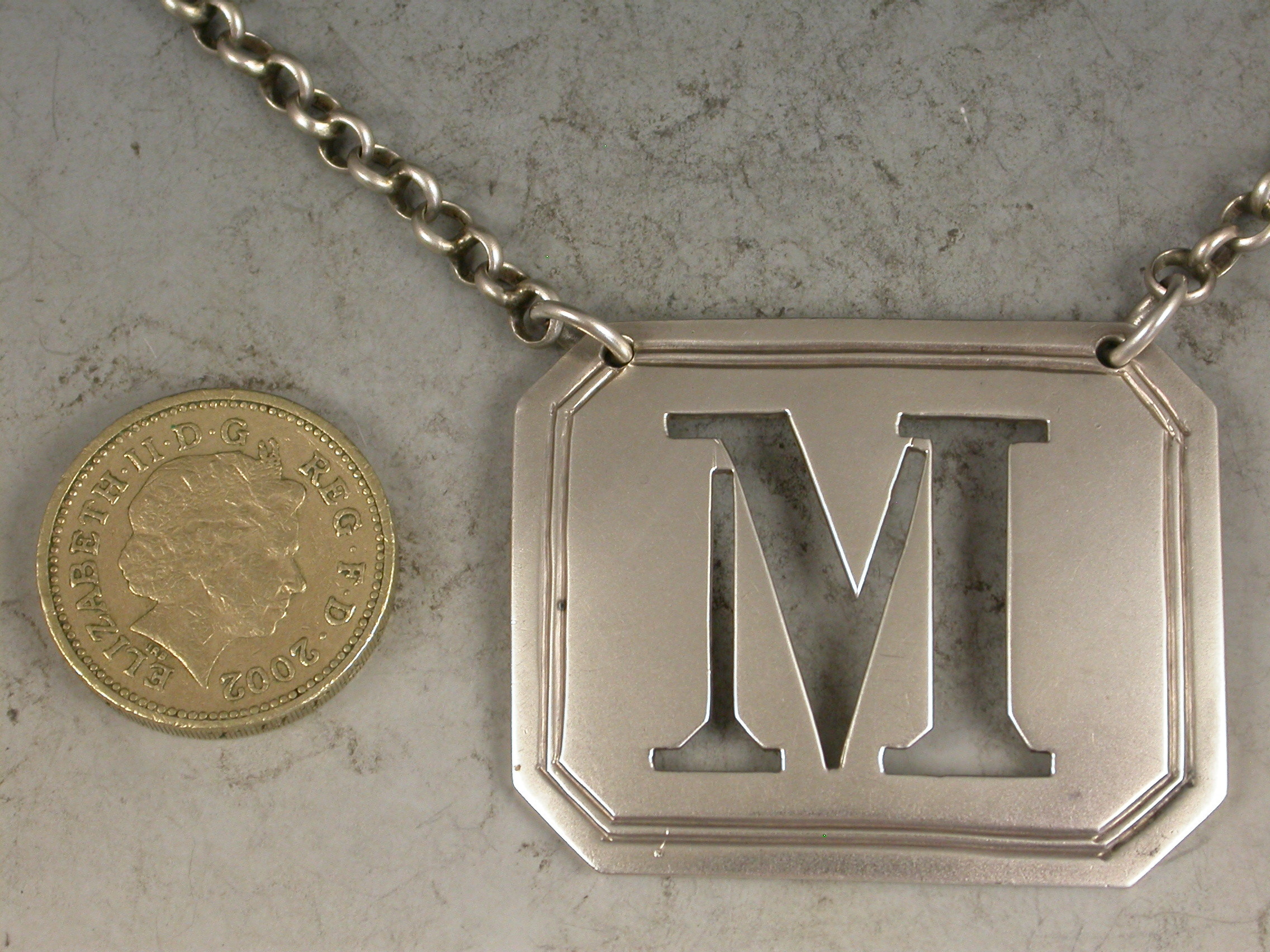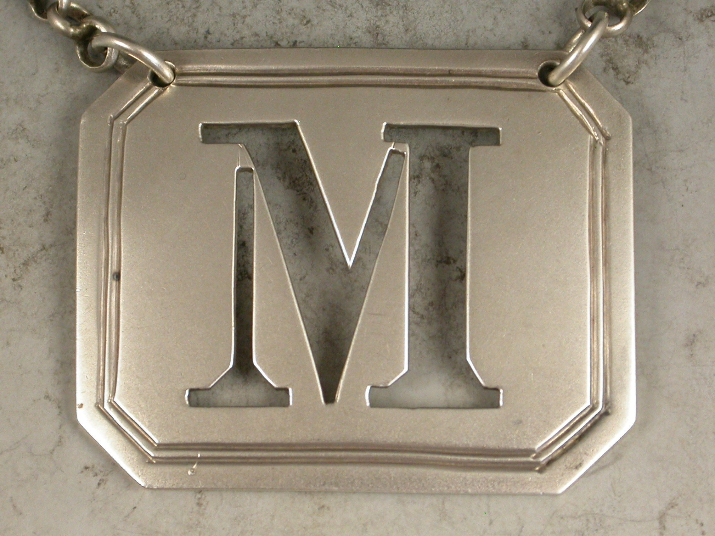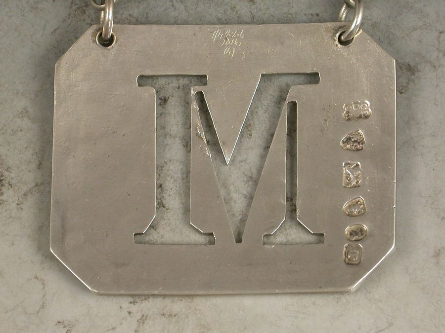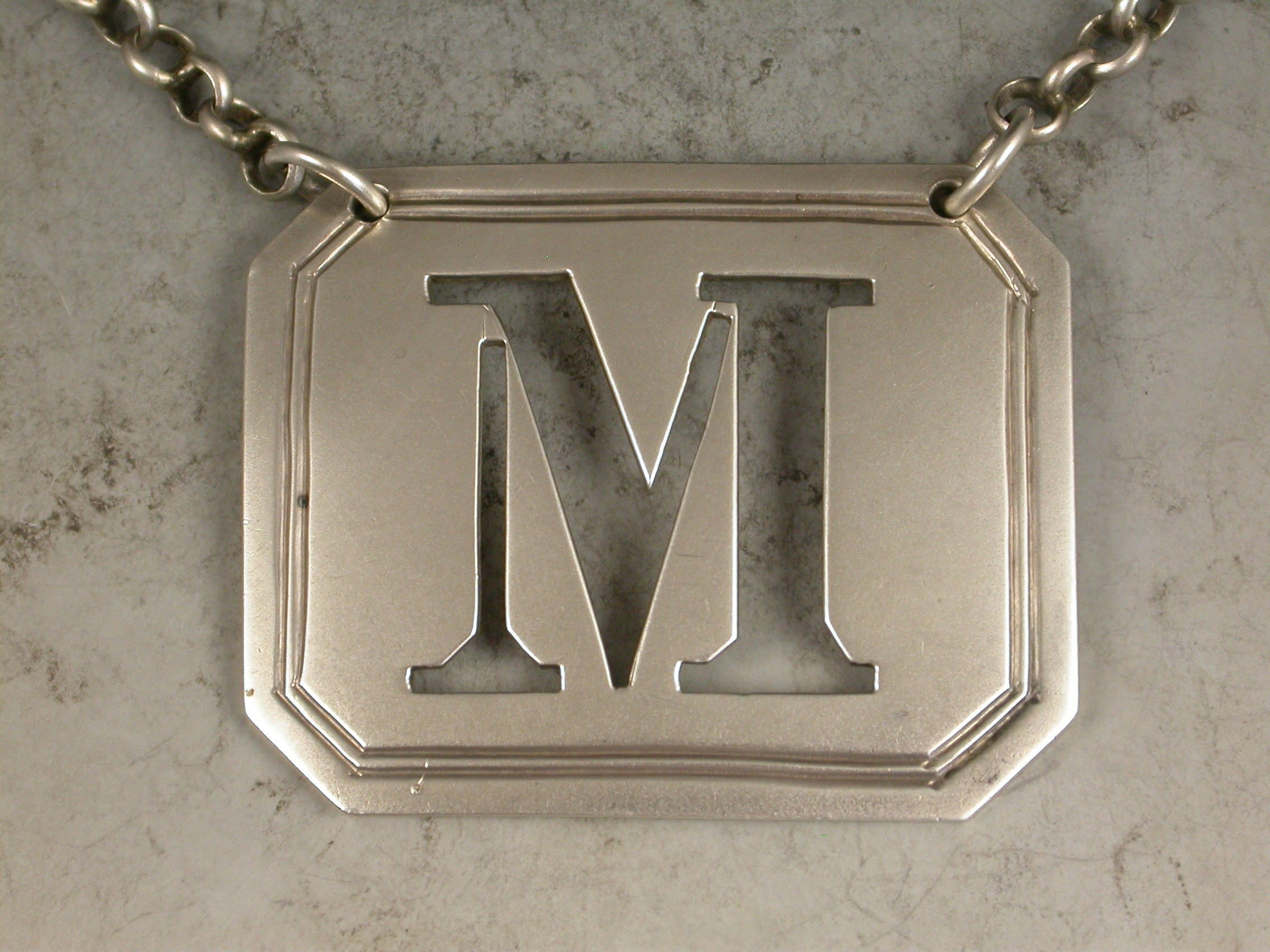 Large Provincial Silver Wine Label Capital Letter 'M'