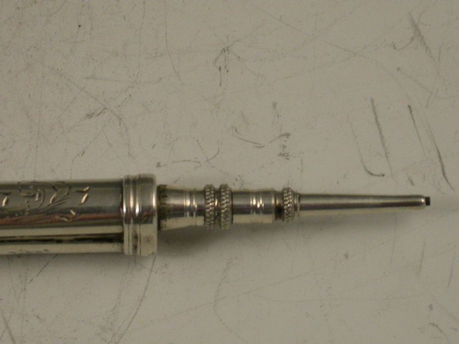 Large Victorian Antique Silver Combination Sliding Dip Pen & Propelling Pencil 'Crest of Elvin'