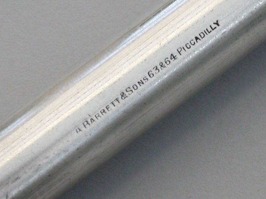 By A Barrett & Sons, Birmingham, 1894. Also stamped with A.Barrett & Sons, London Retailer's mark.