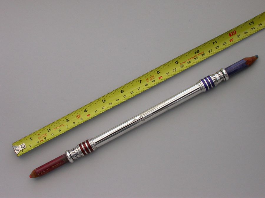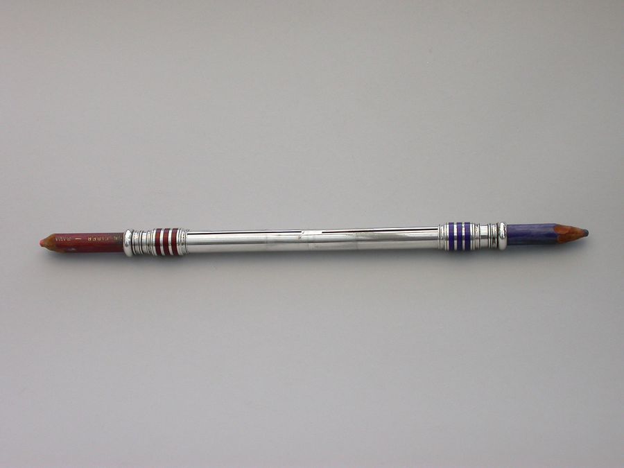 Large Victorian Silver & Enamel Oversize Sliding Red & Blue Editing Pencil