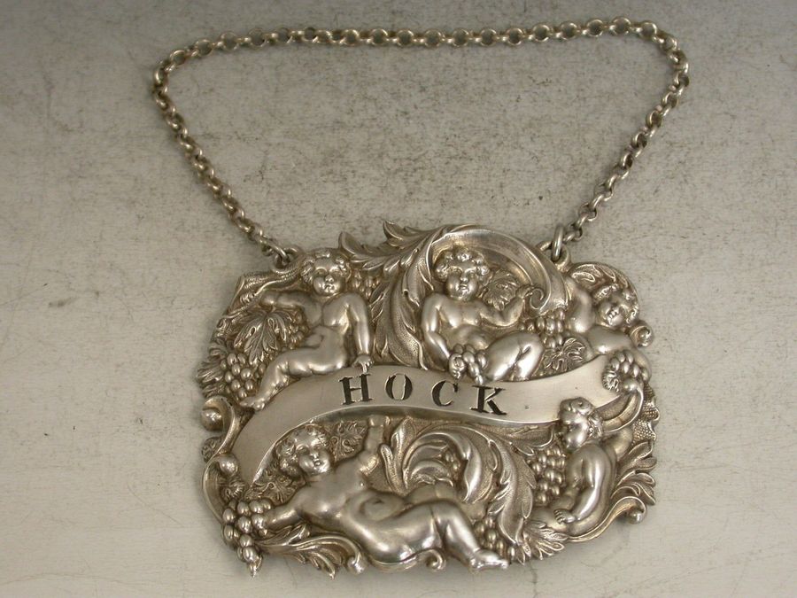 Large Victorian Silver 'Bacchic Reveller' Wine Label 'Hock'
