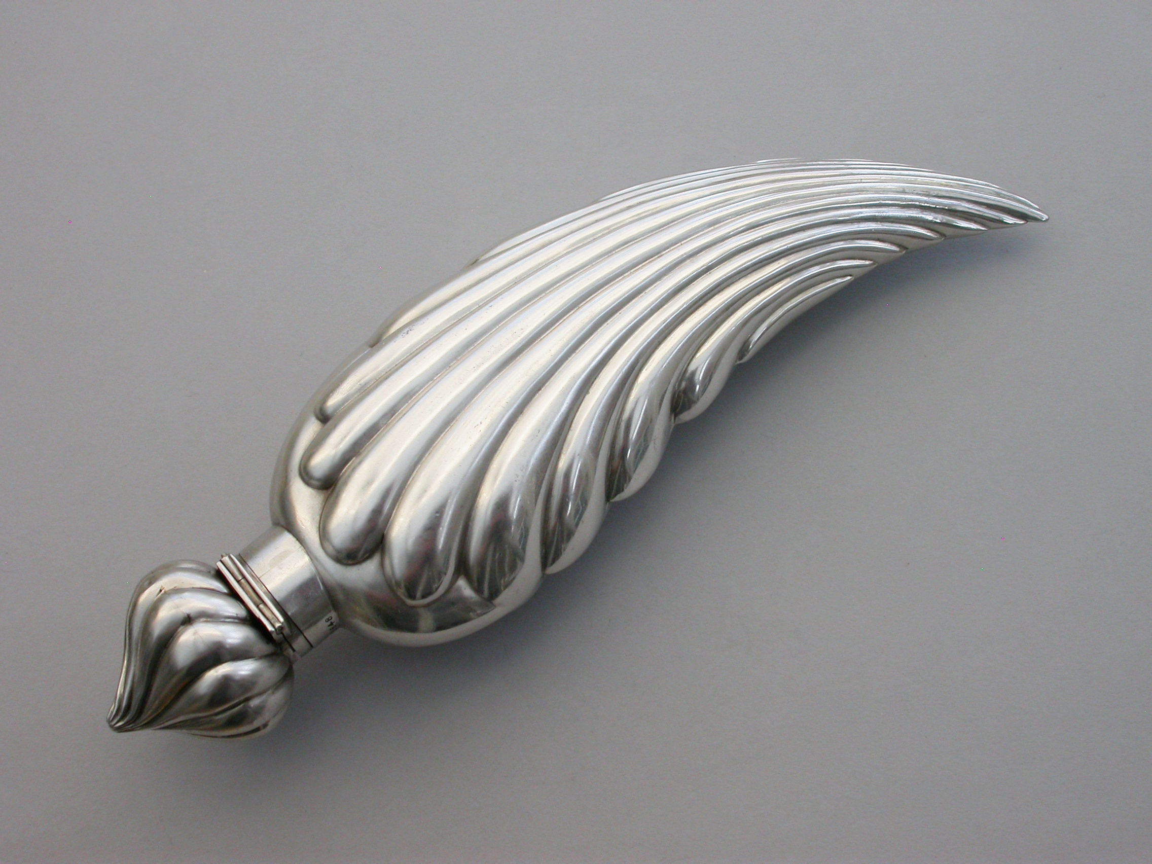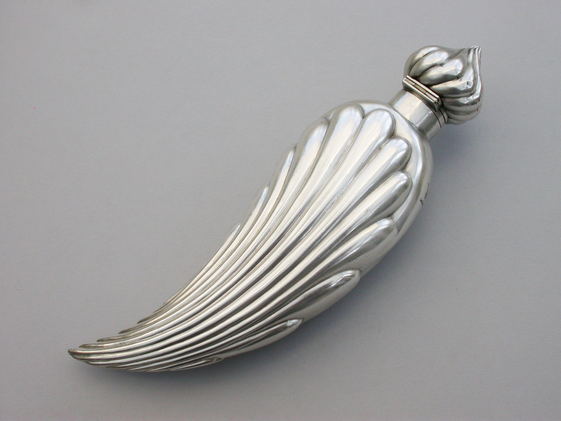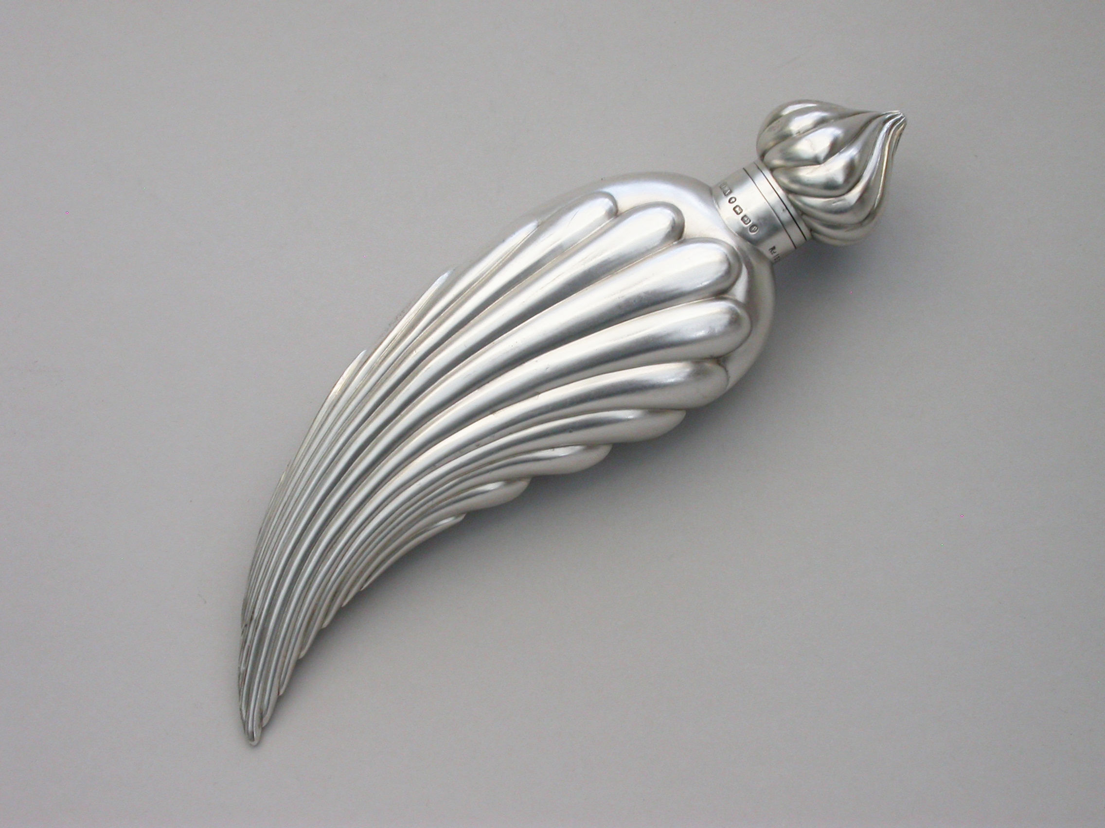 Large Victorian Silver Fluted Cornucopia Shaped Scent Flask
