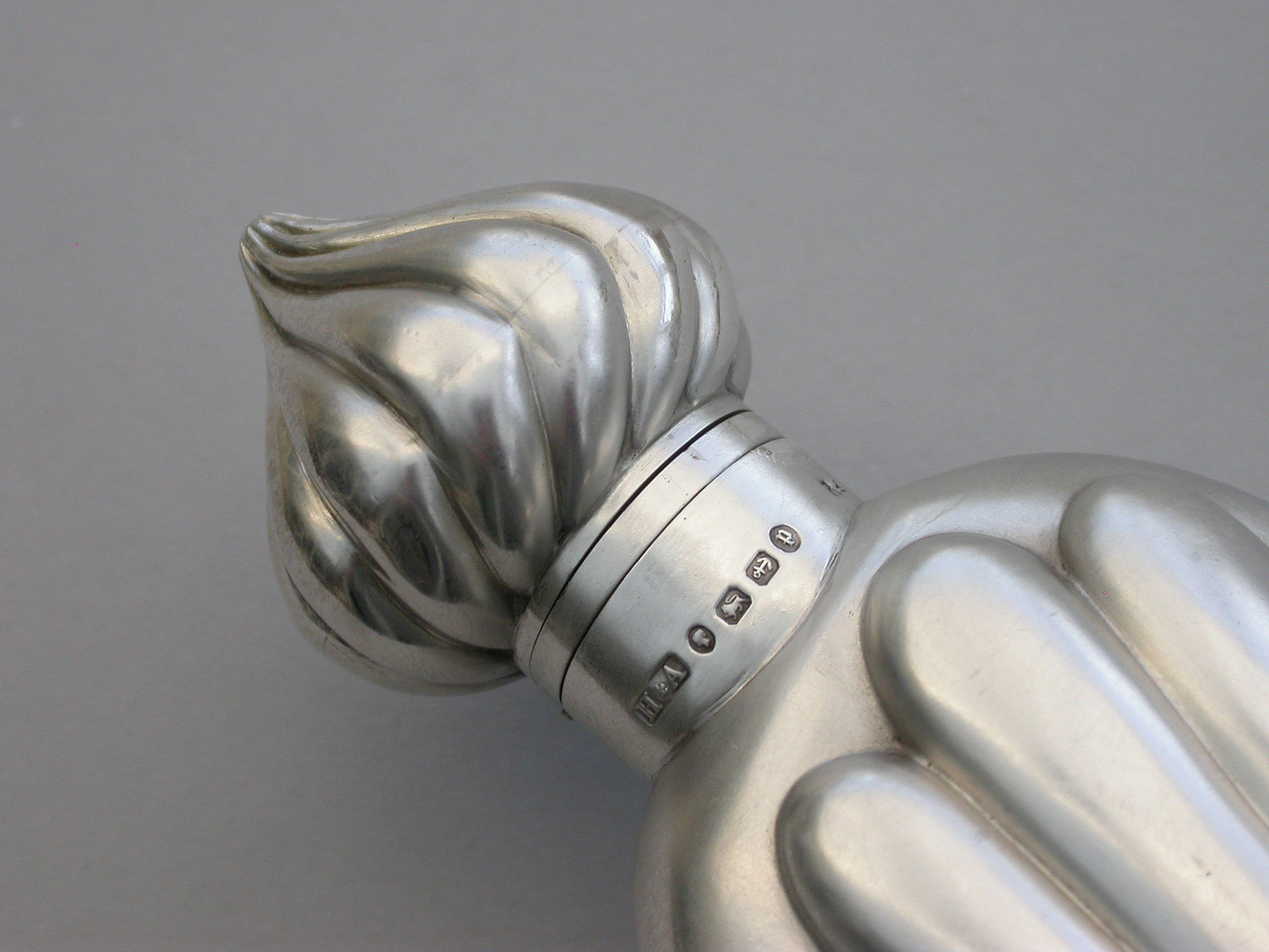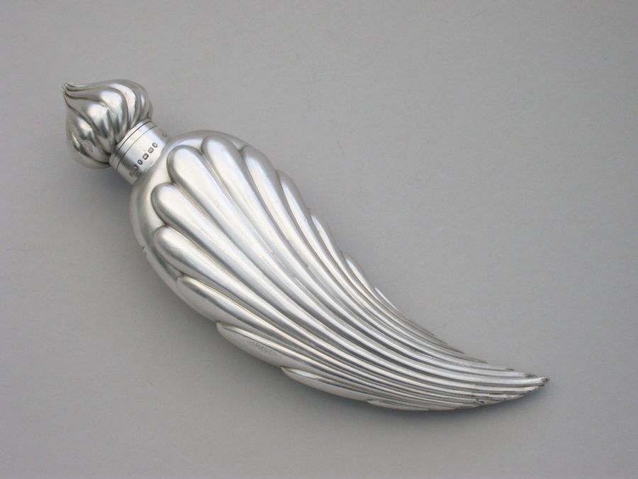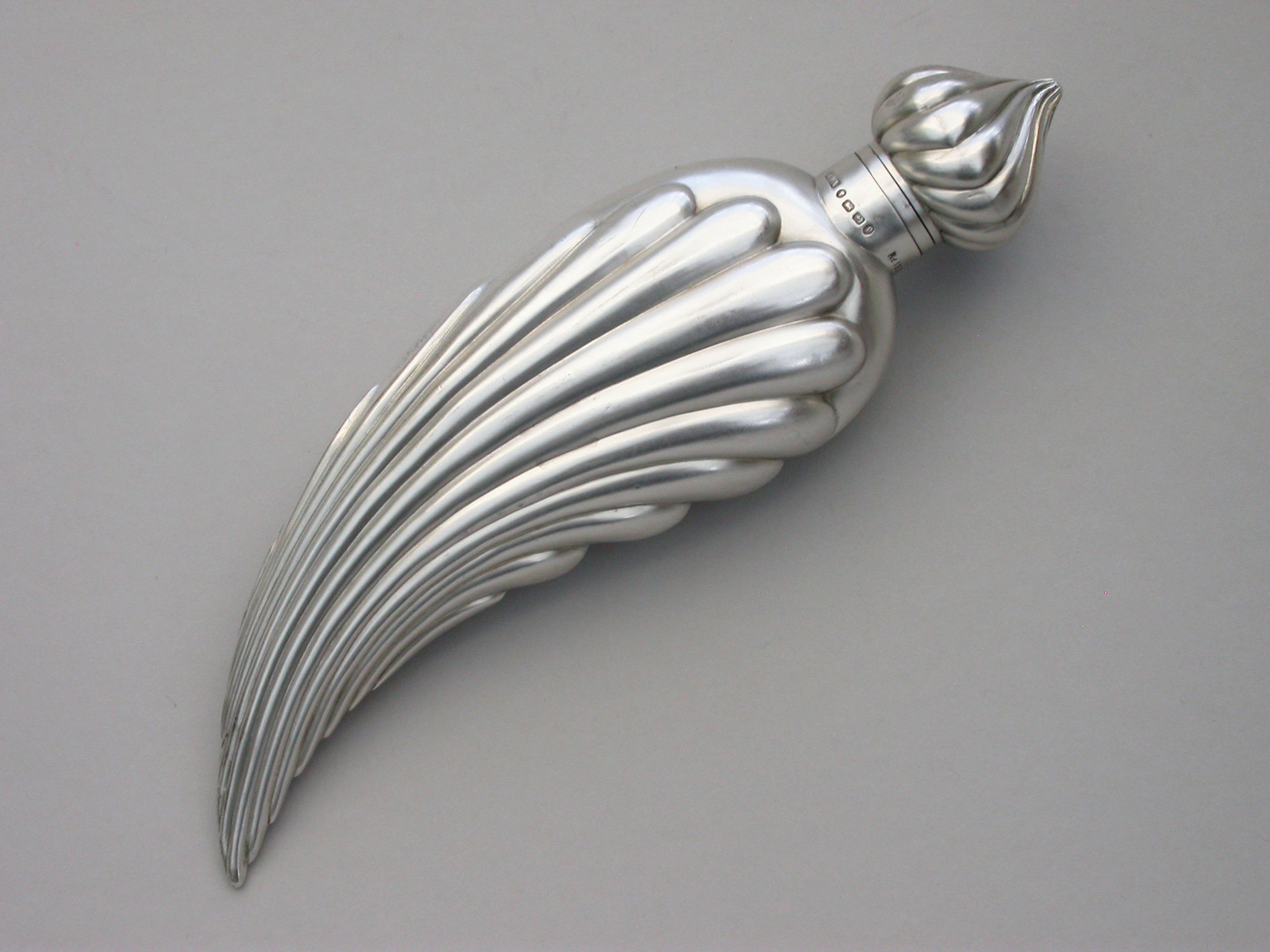 Large Victorian Silver Fluted Cornucopia Shaped Scent Flask