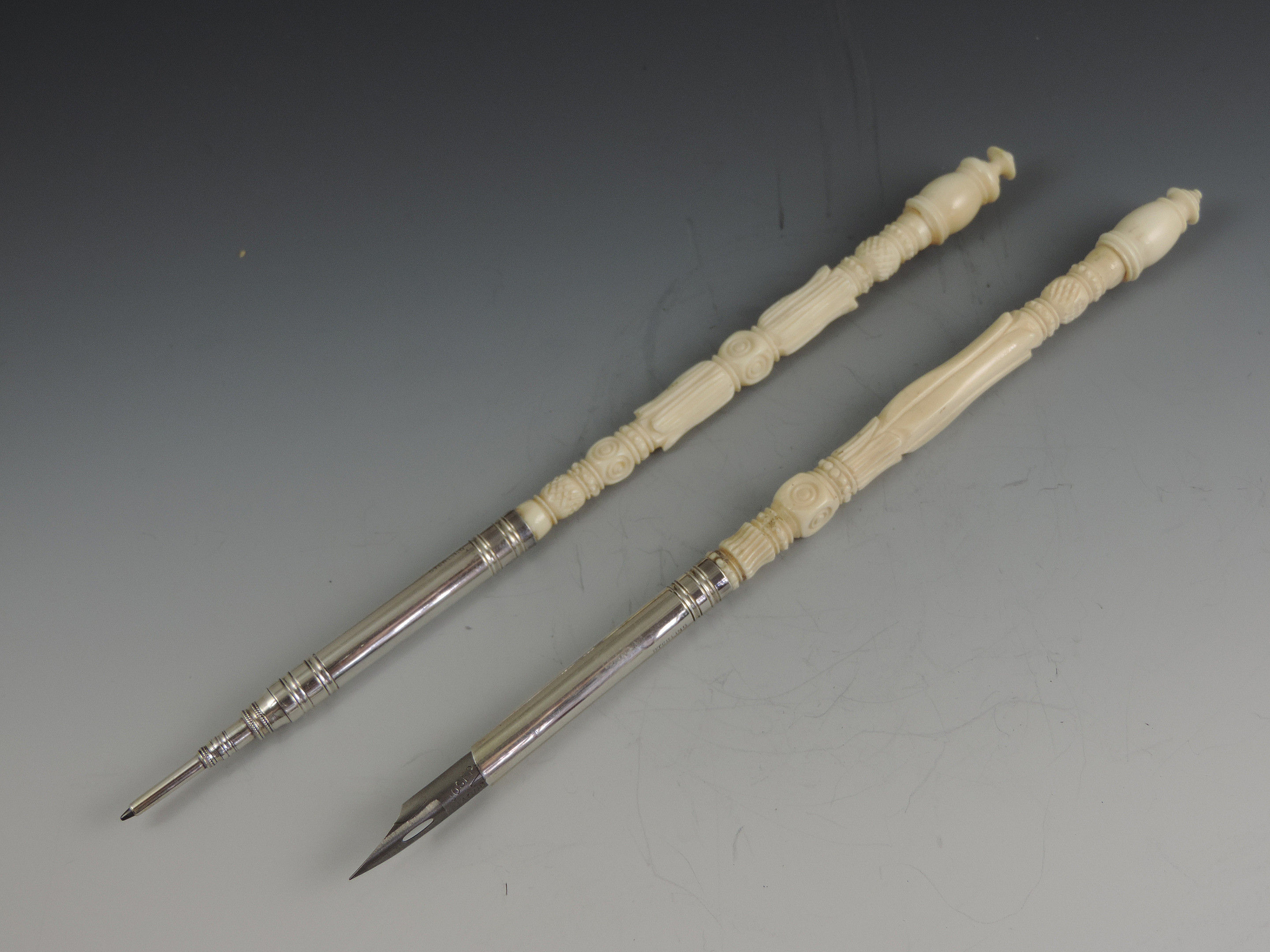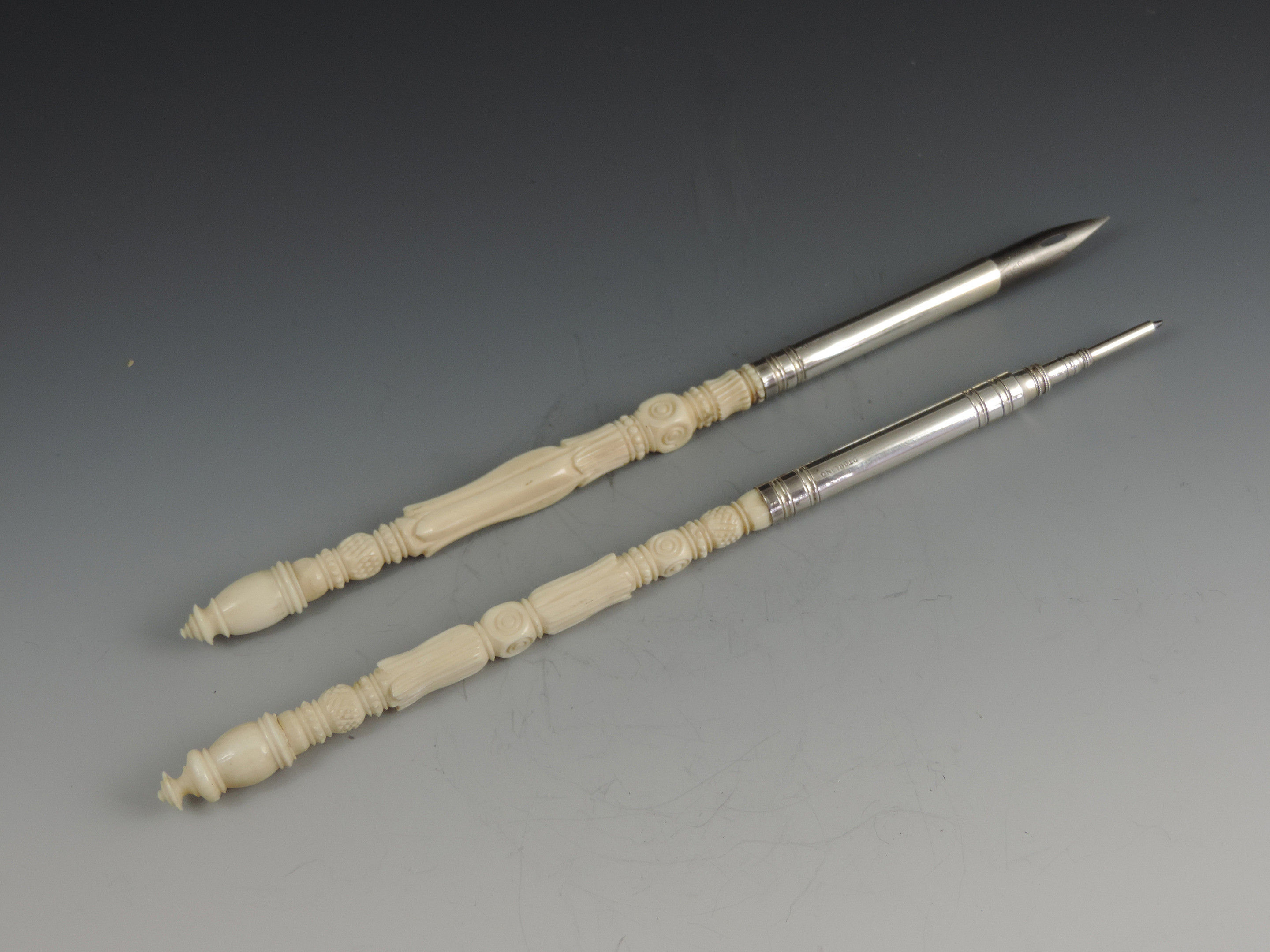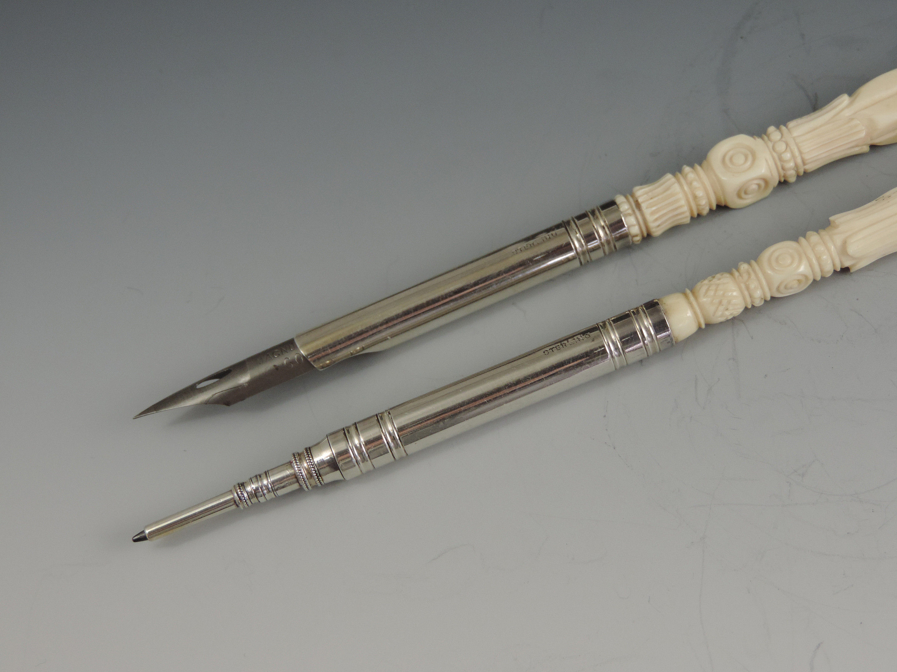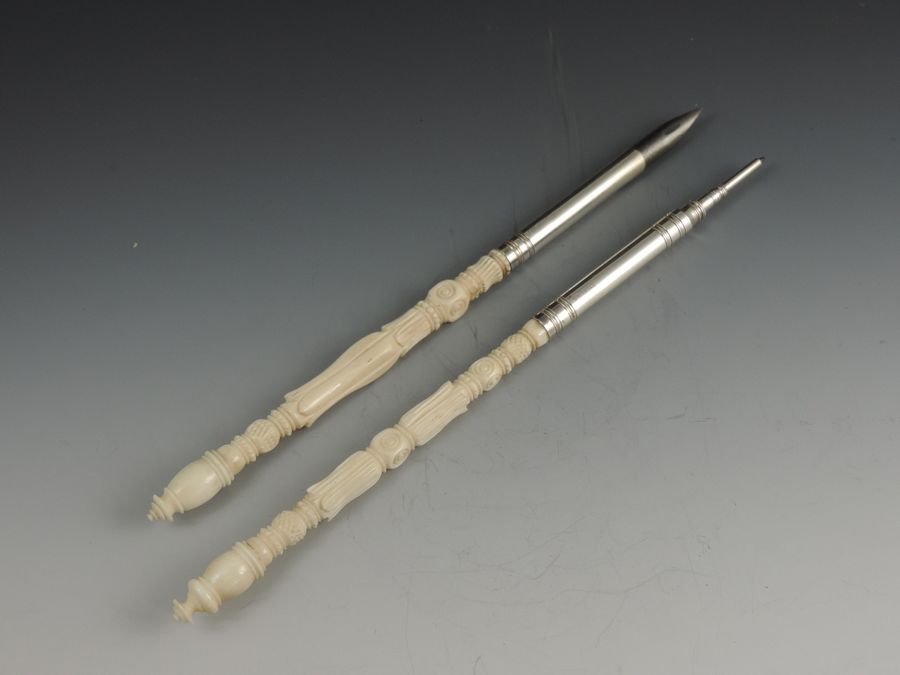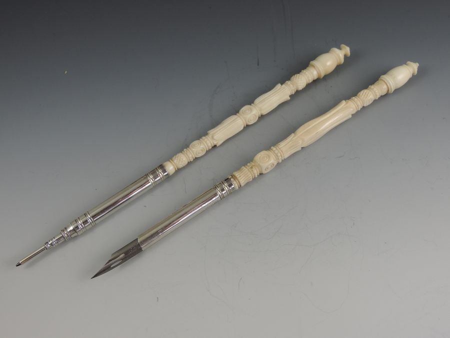 Late 19th Century Sterling Silver Turned Ivory Dip Pen & Pencil