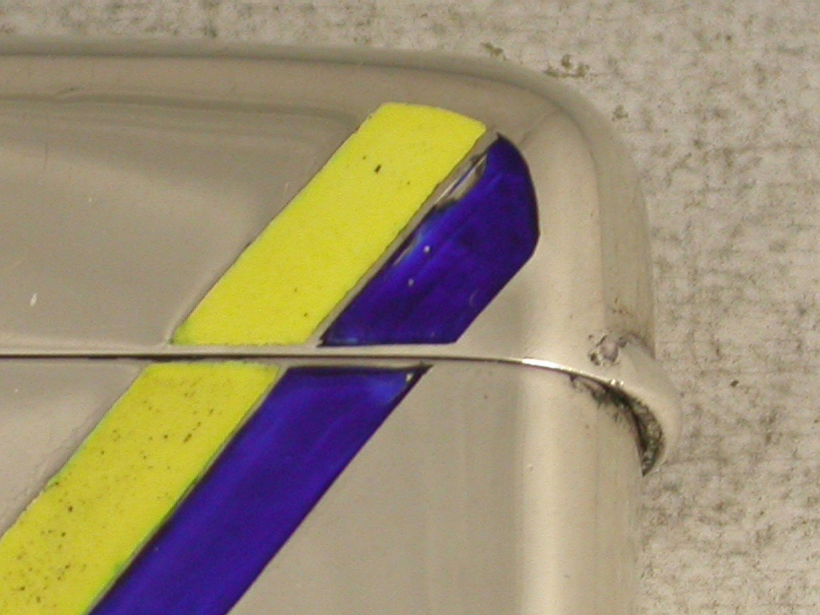In good condition with just a tiny slither of enamel missing to the blue stripe top right.