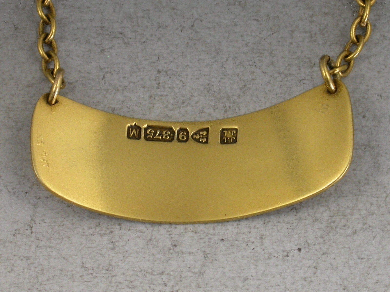 A rare mid 20th century Provincial 9 carat gold Wine Label of curved rounded rectangular form with single thread boarder, engraved for Port.