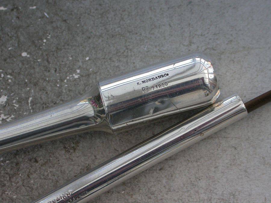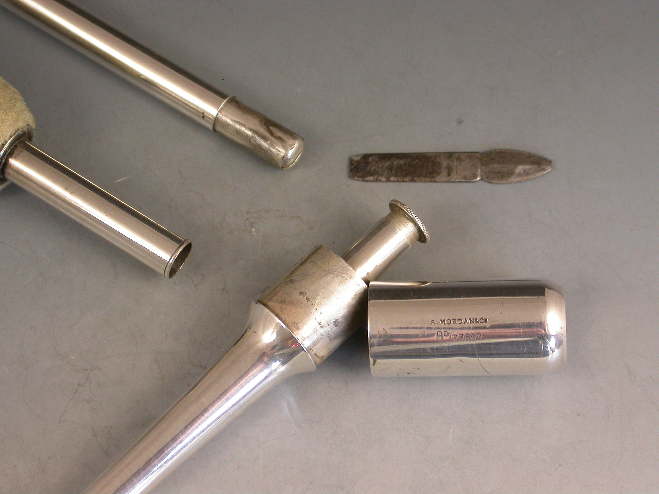 Both pieces stamped: S Mordan & Co, and with registered design numbers 173800 and 173802. c1891