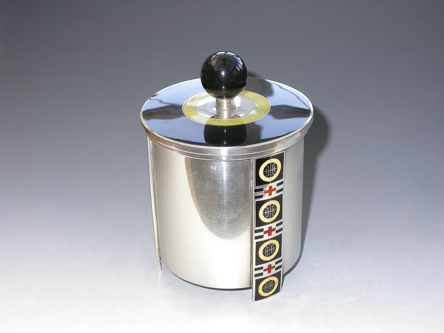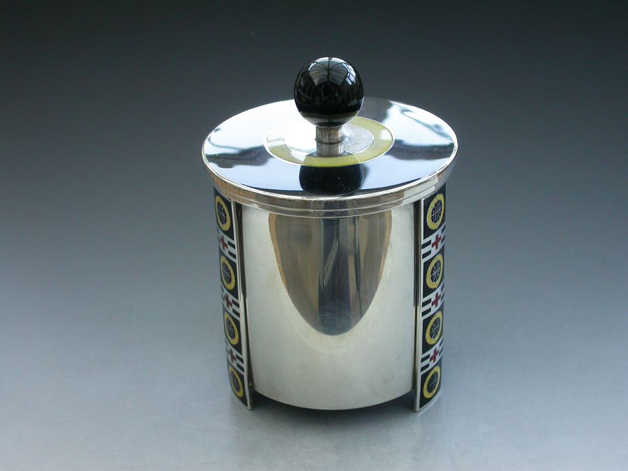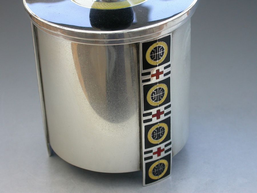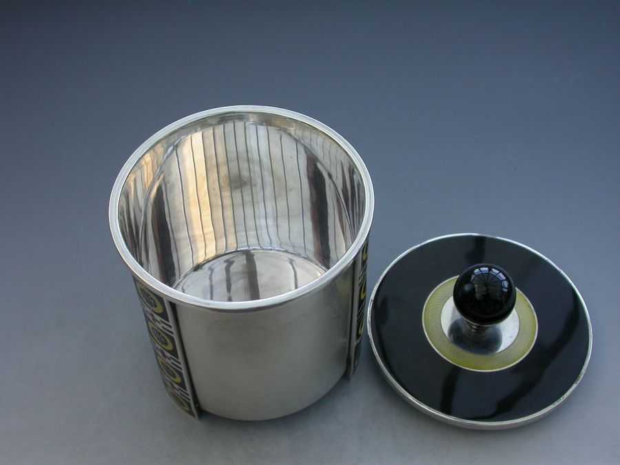 Norwegian Silver & Enamel Art Deco Tea Caddy