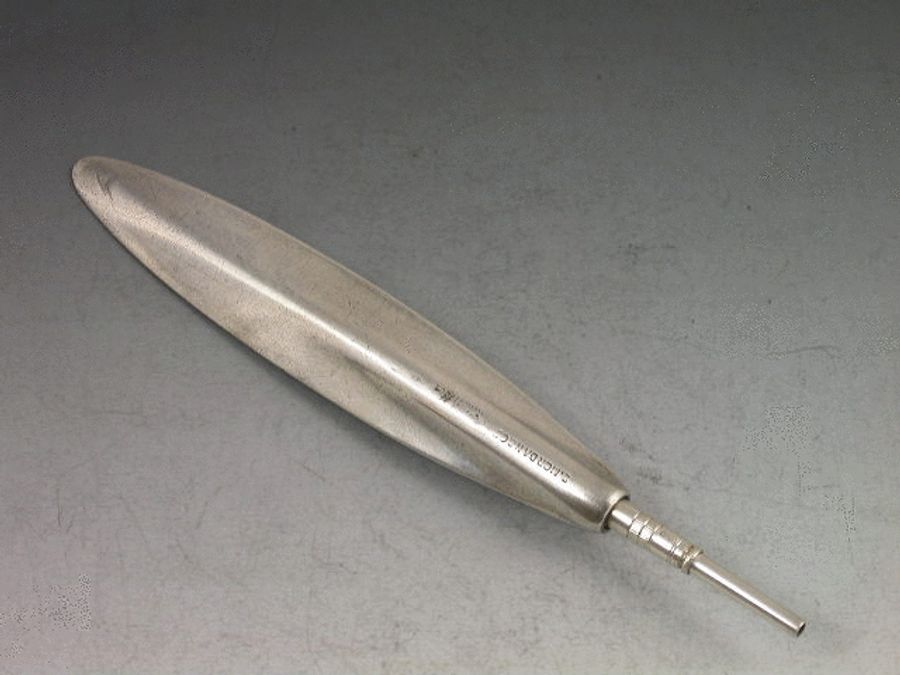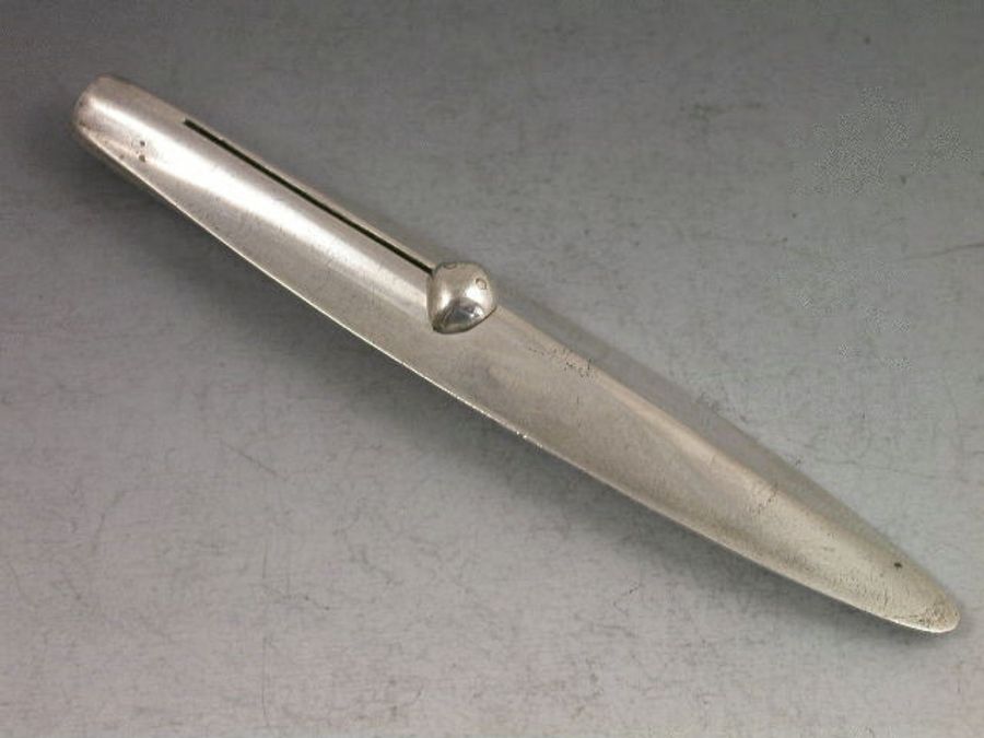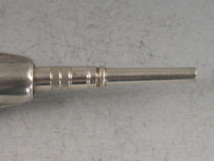 A rare late Victorian silver novelty Propelling Pencil made in the form of an African Assegai, with push slide extending mechanism.