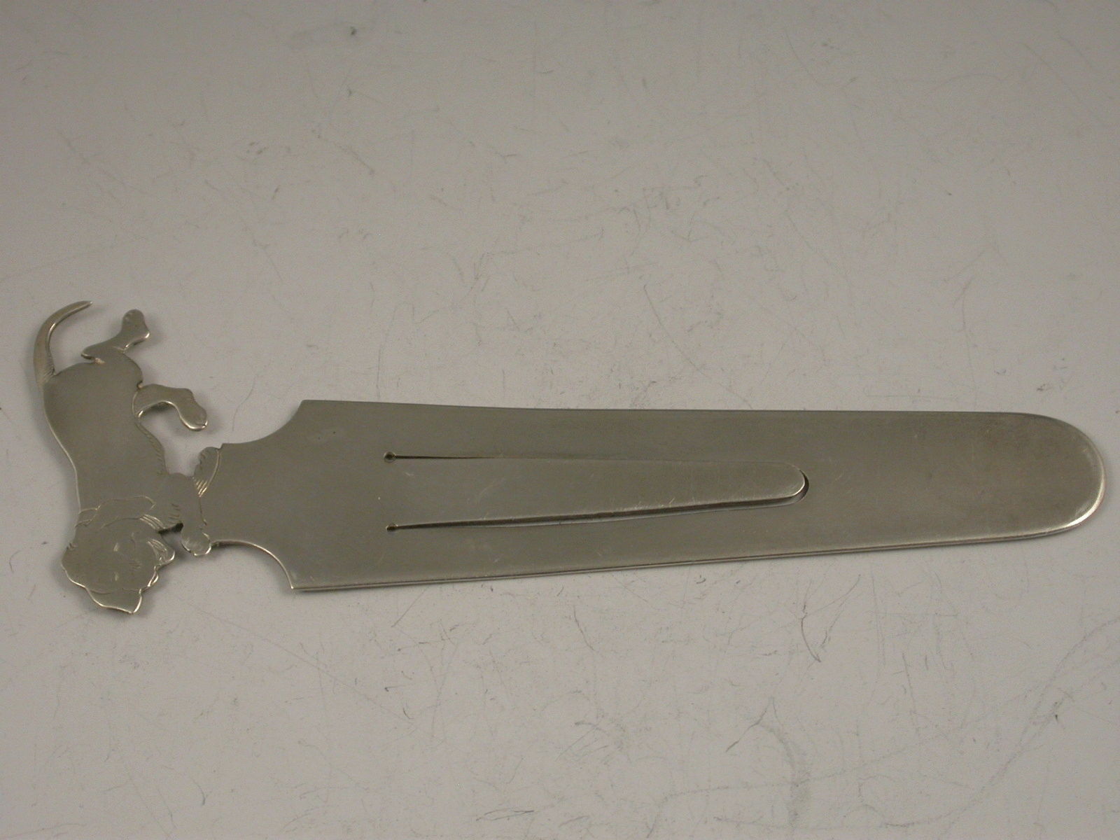 A rare early 20th century large silver Bookmark, the terminal formed as a comical Dog, after a design by Benjamin Rabier.
