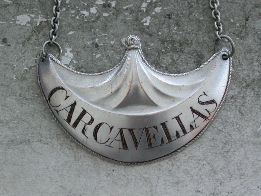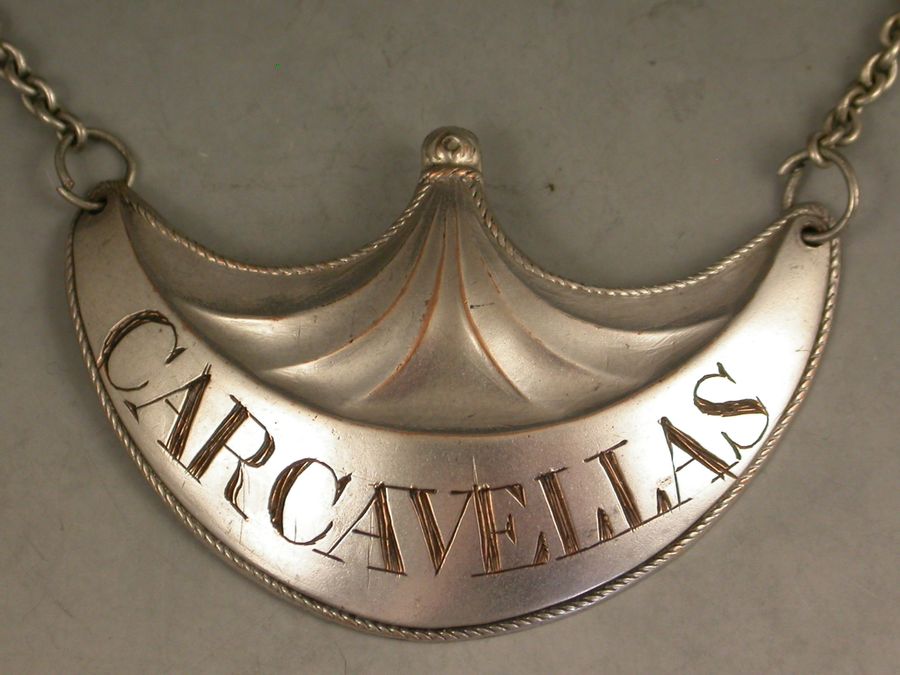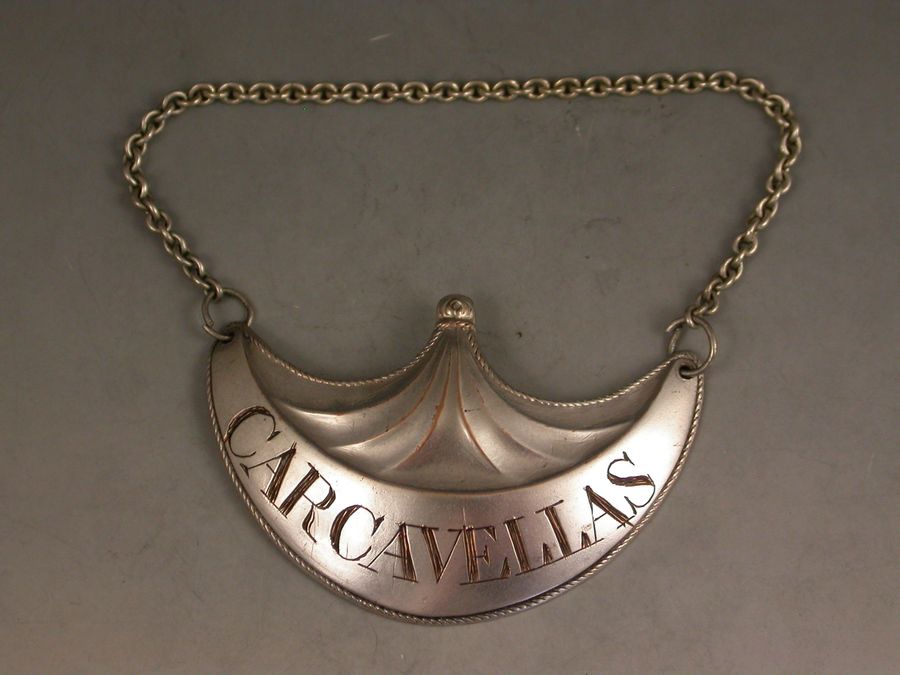 Old Sheffield Plate Drapery Wine Label 'Carcavellas'