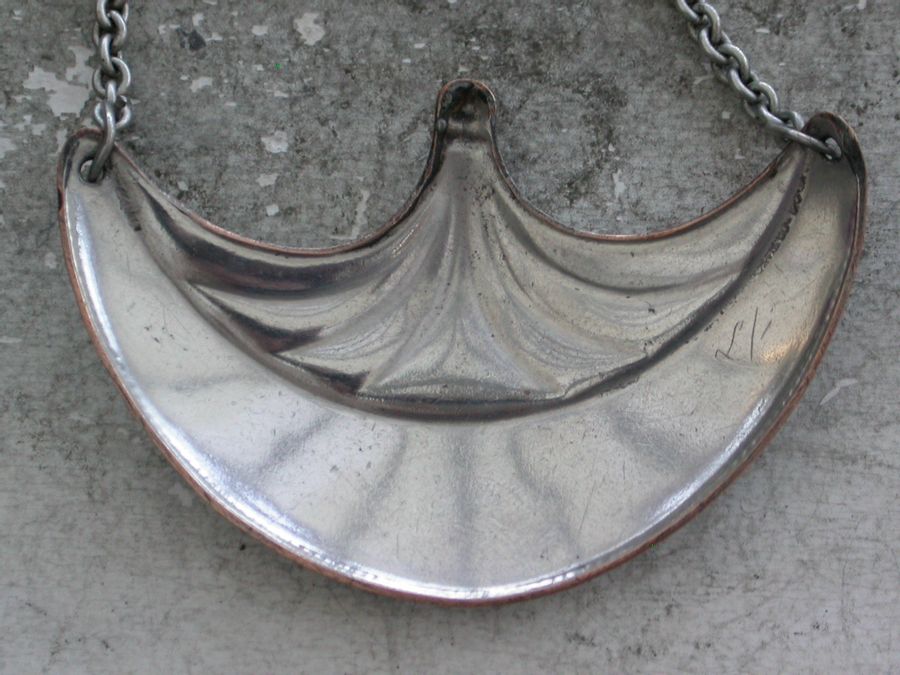 A good 18th century Old Sheffield Plate on copper Wine Label of crescent form with peaked drapery above, incised for Carcavellas.