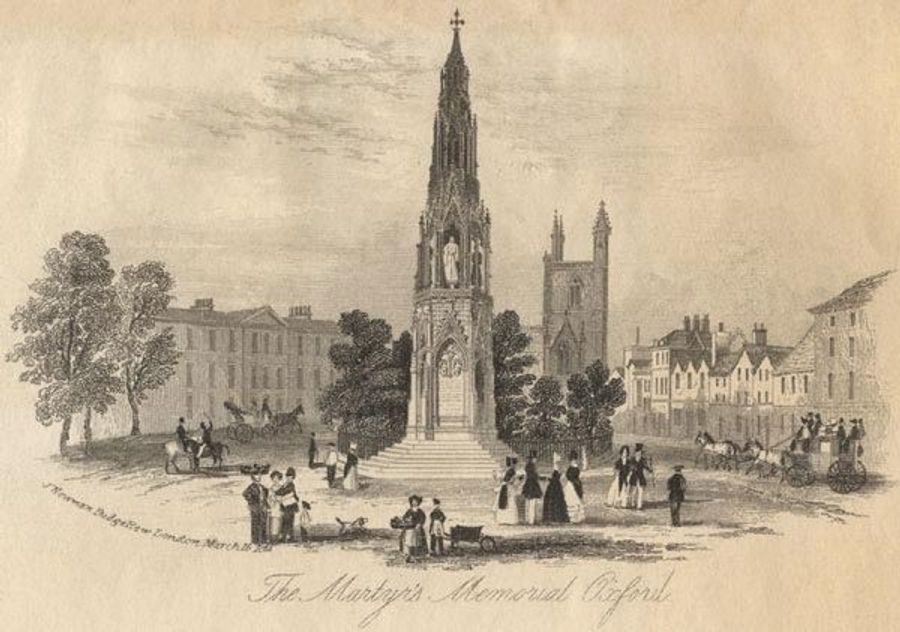 The Martyrs' Memorial is an imposing stone monument positioned at the intersection of St Giles', Magdalen Street and Beaumont Street in Oxford, England just outside Balliol College. It commemorates the 16th-century ""Oxford Martyrs"".