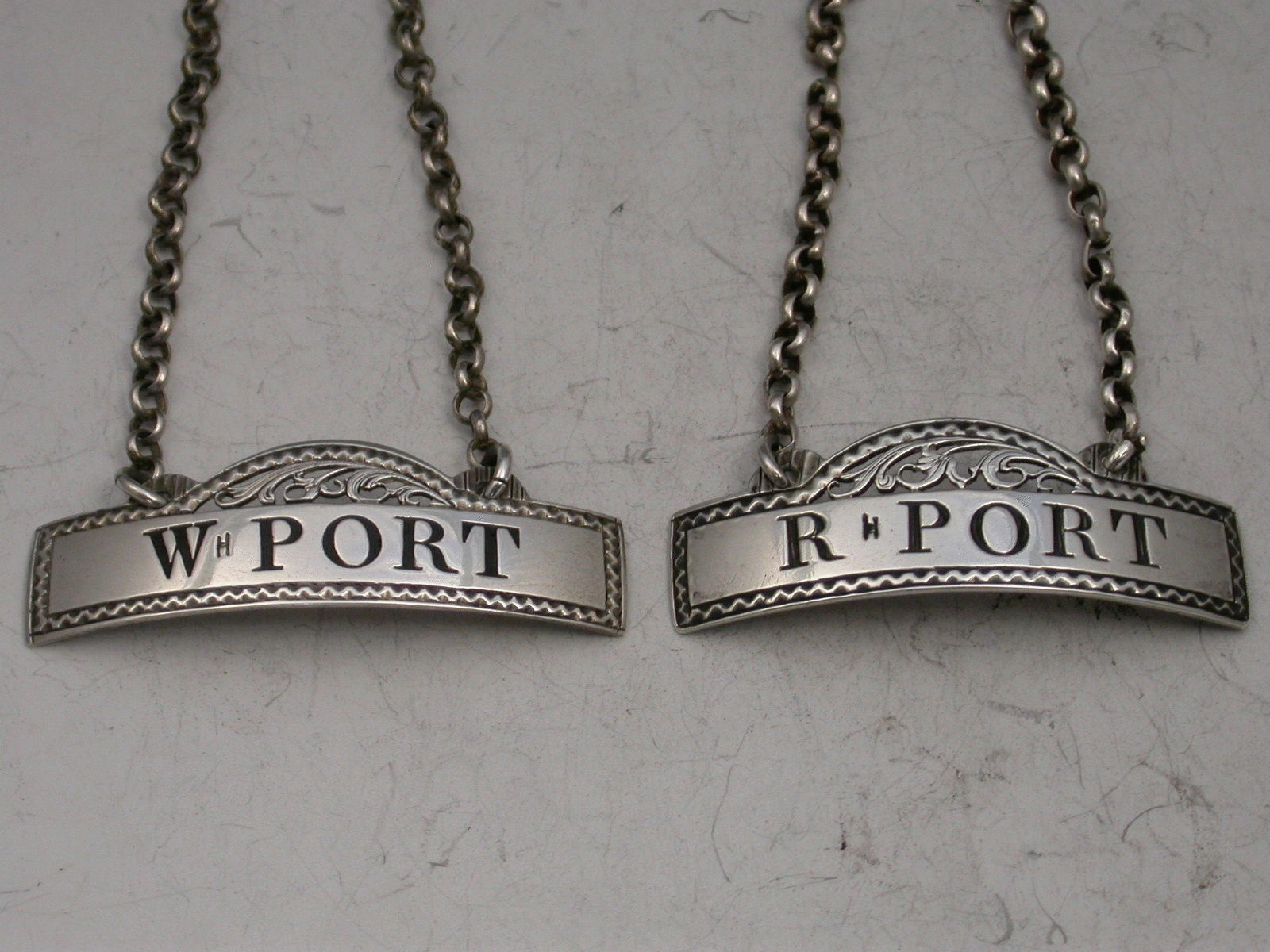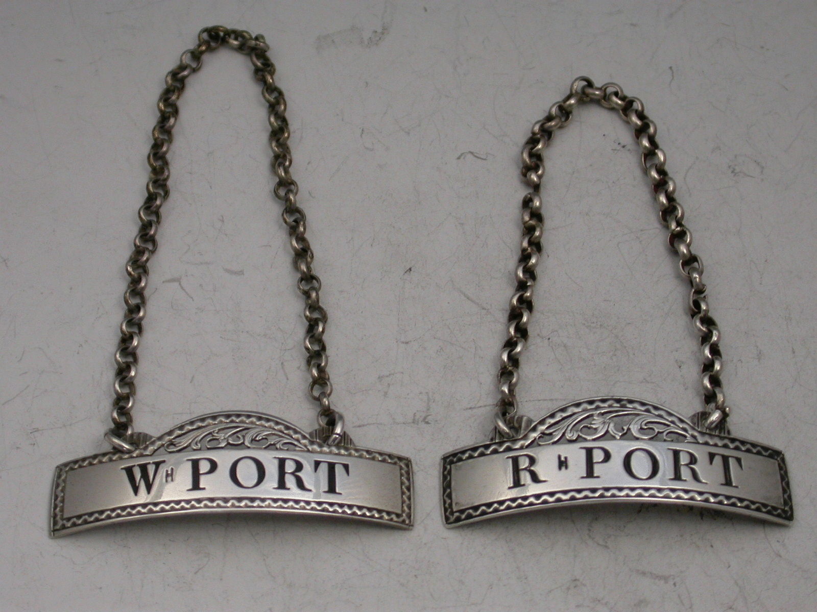 Pair Antique Silver Wine Labels W*Port & R*Port