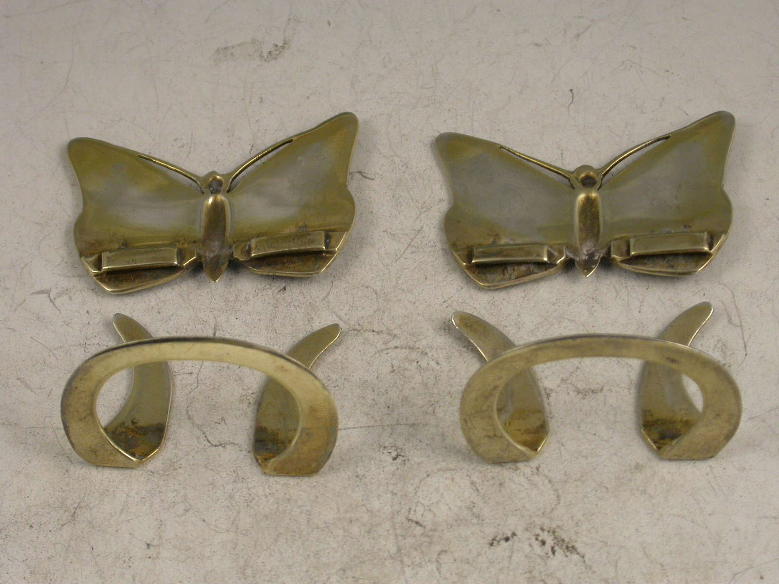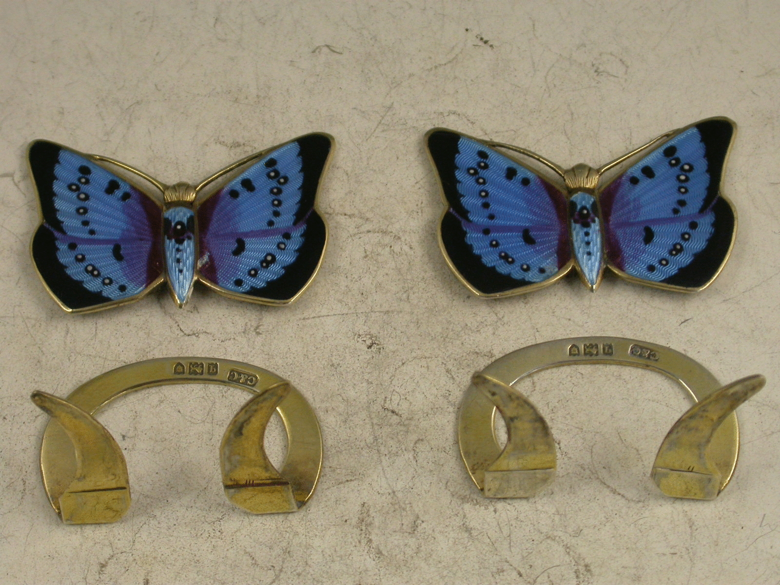 Pair Early 20th Century Silver & Enamel Butterfly Menu Holders