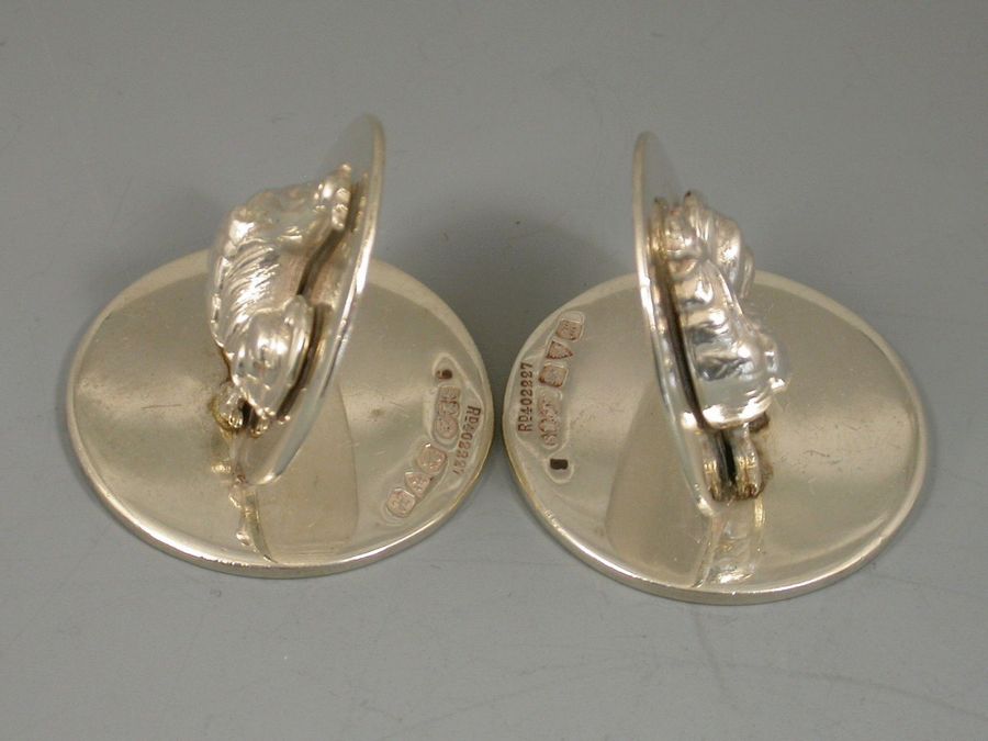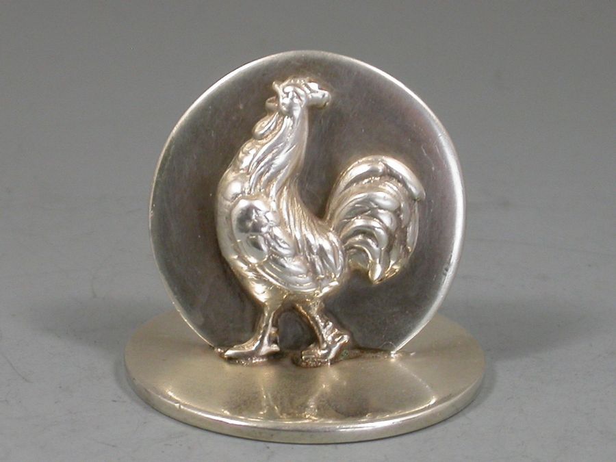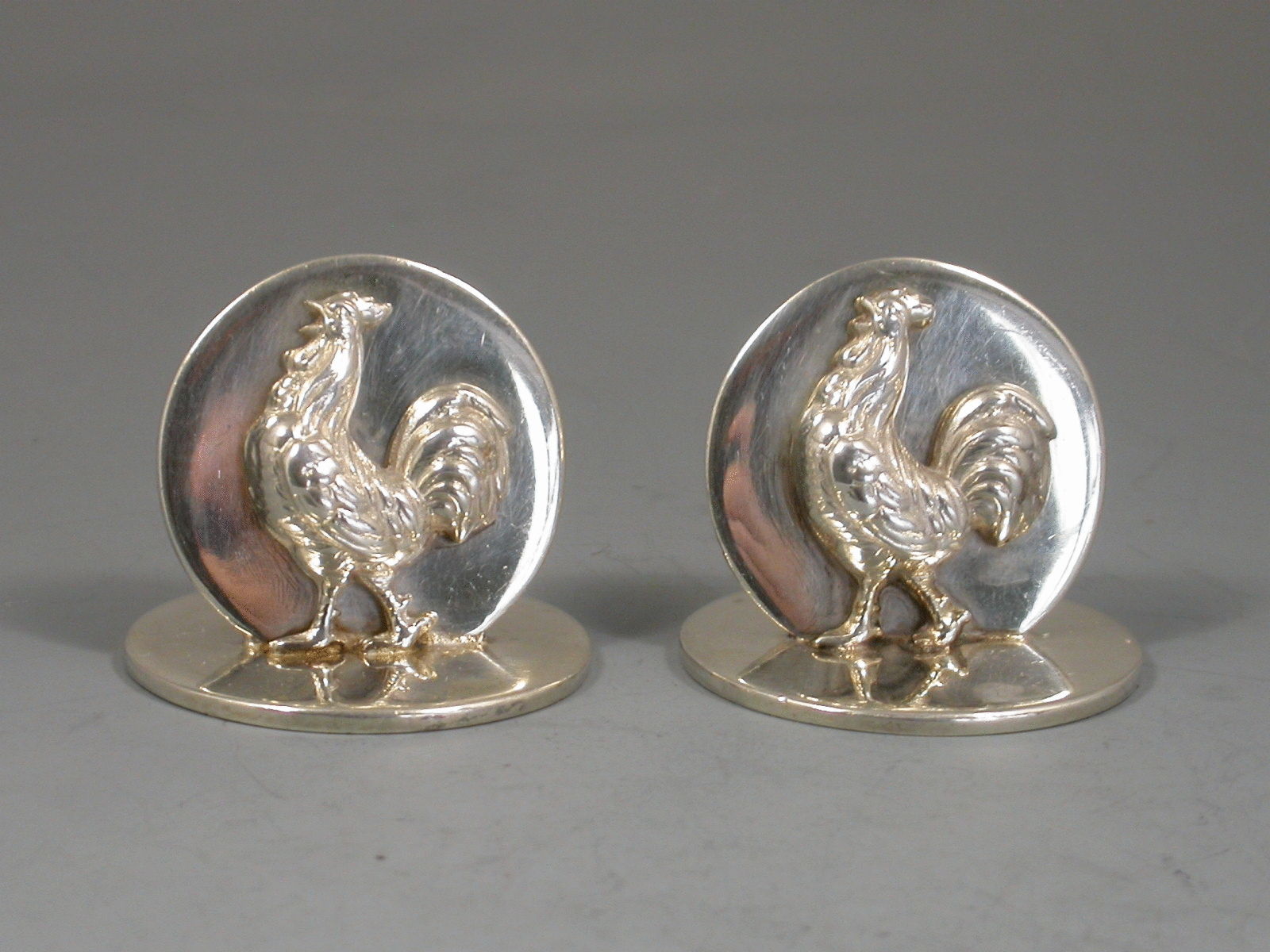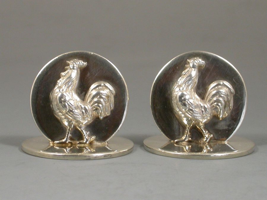 Pair Edwardian Antique Silver Cockerel Menu Holders