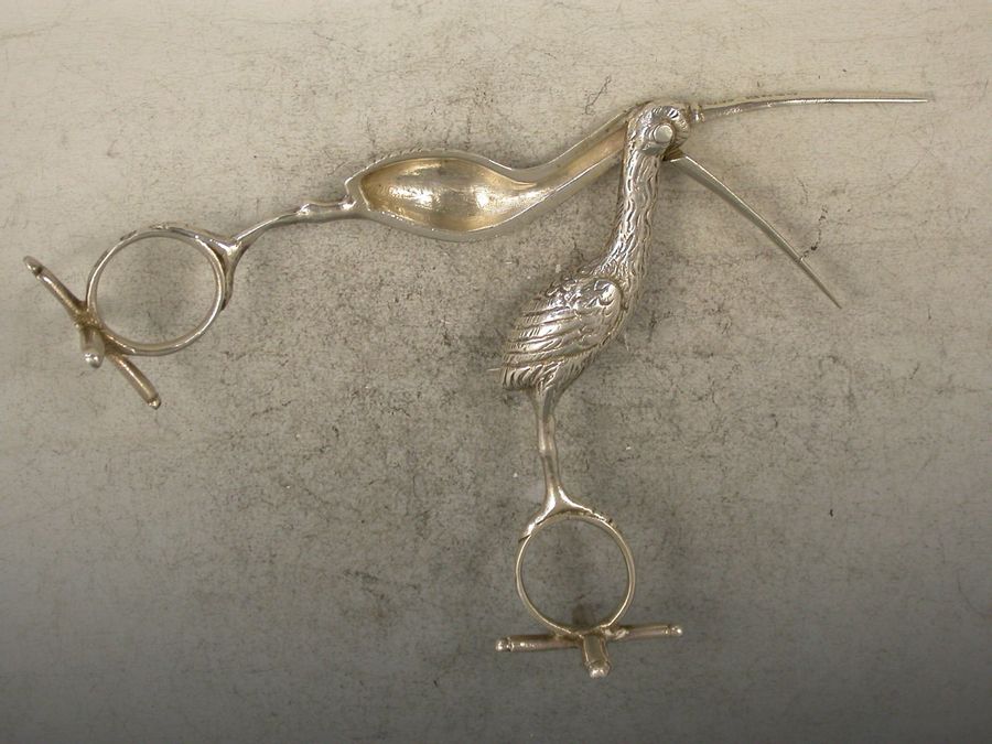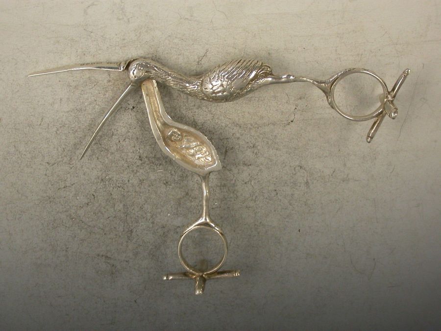 Pair Edwardian Cast Antique Silver Stork Ribbon Threaders