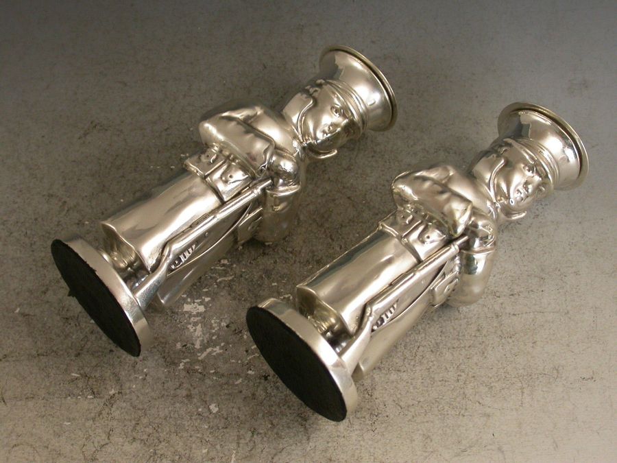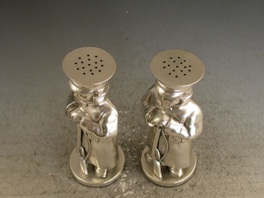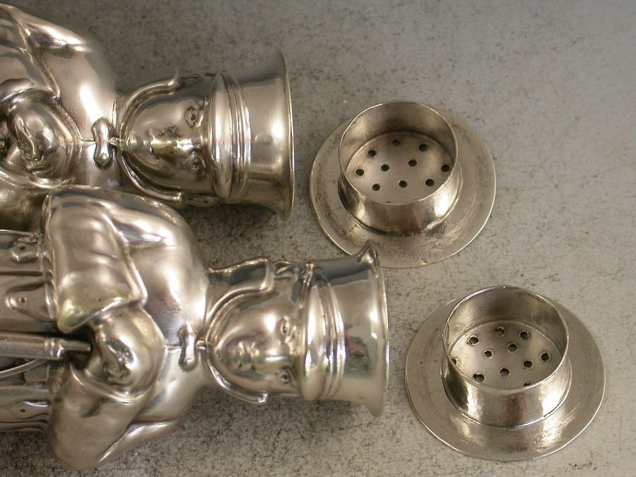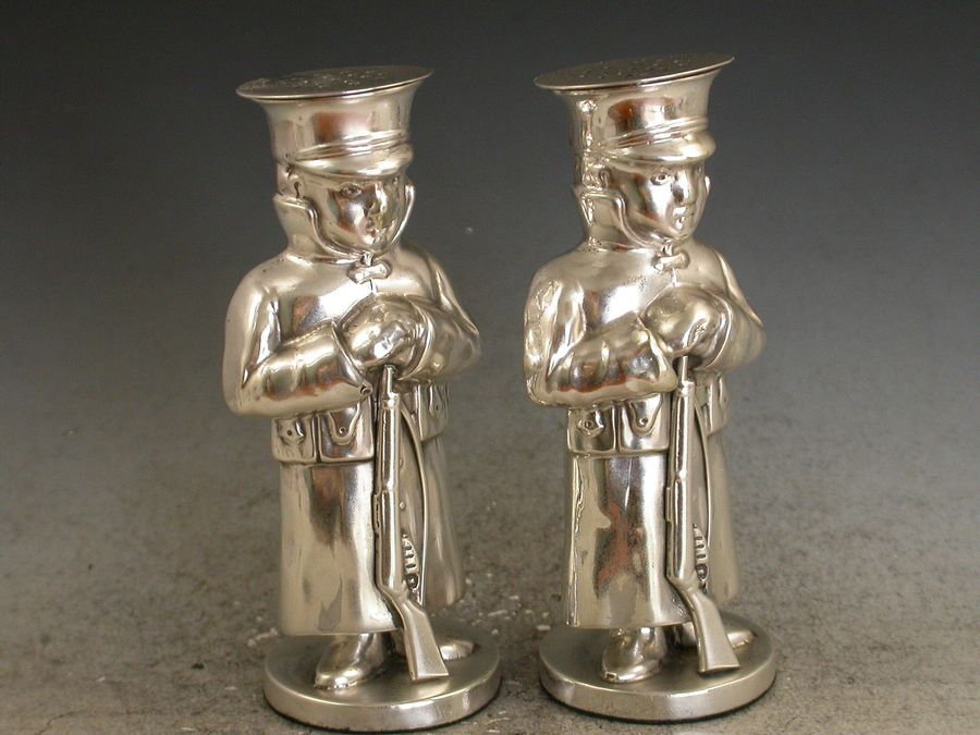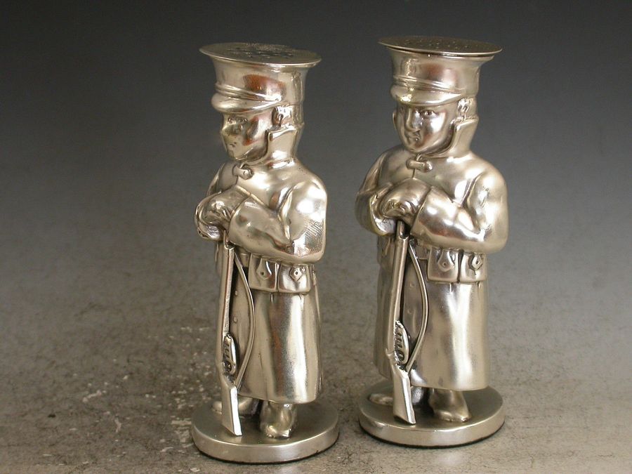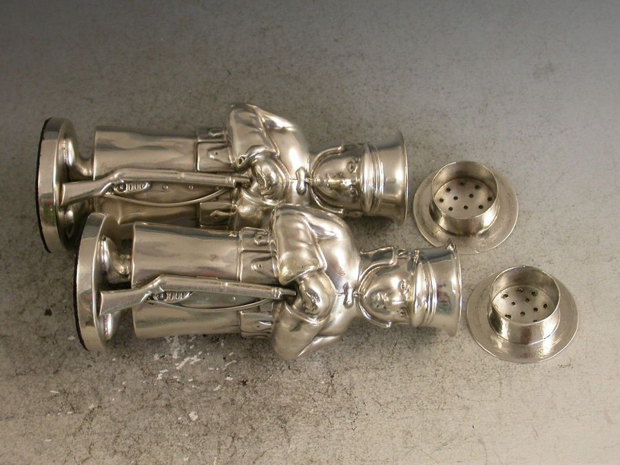 Pair Edwardian Novelty Silver Soldier Peppers