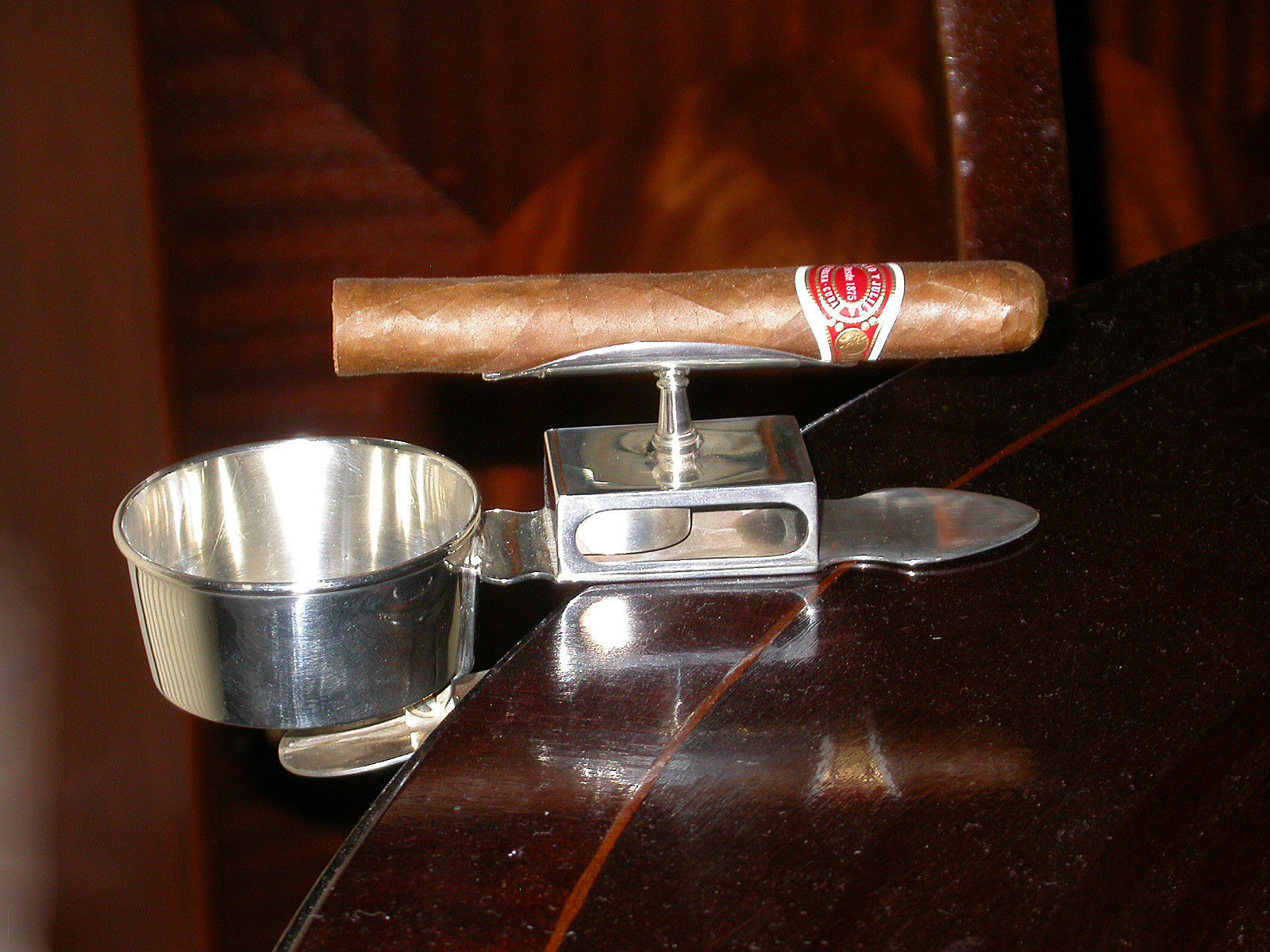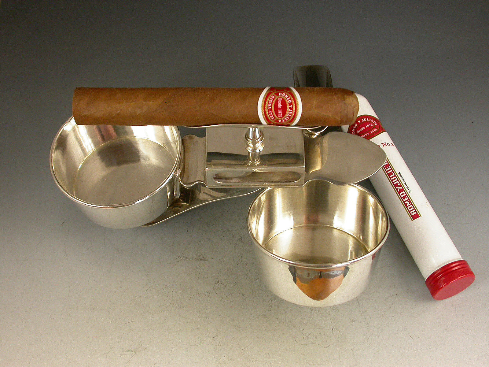 Pair Edwardian Silver Clip On Ash Trays / Cigar Rests / Match Box Holders