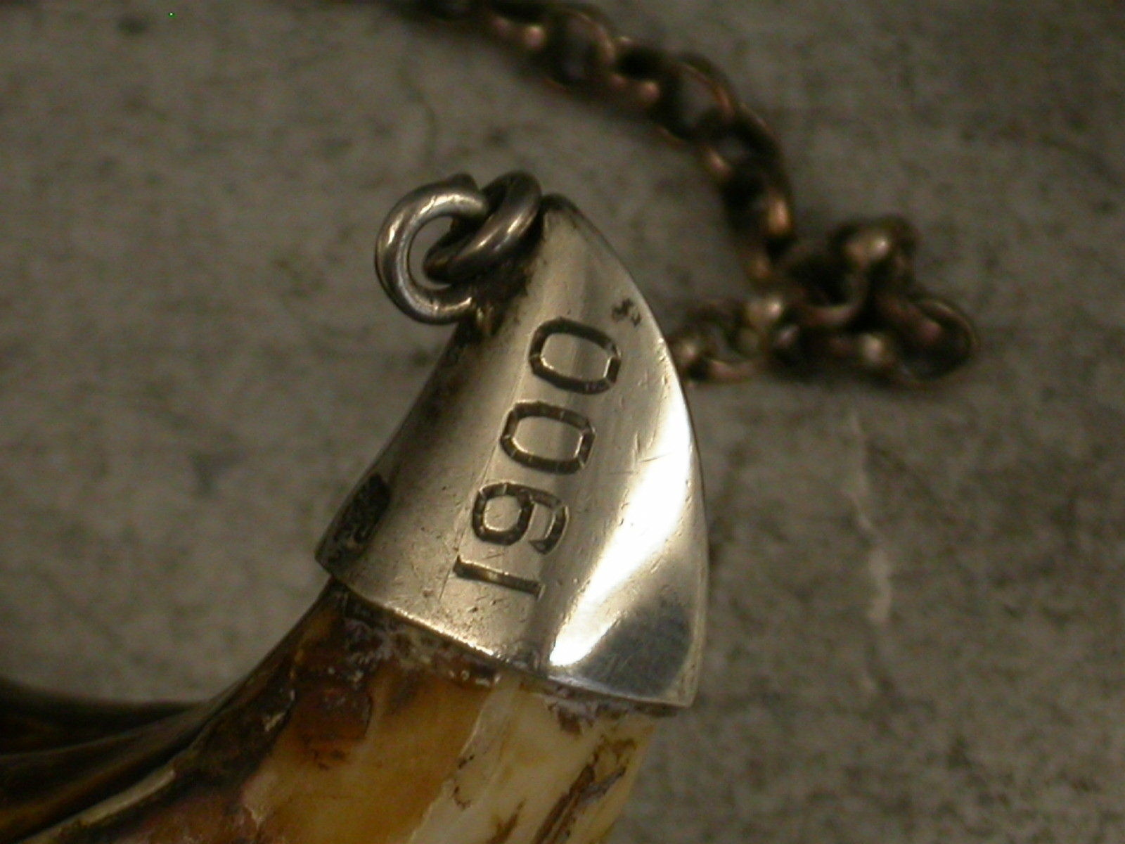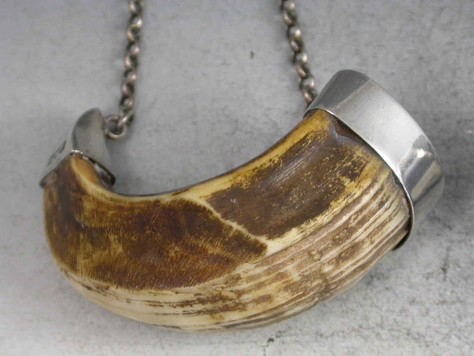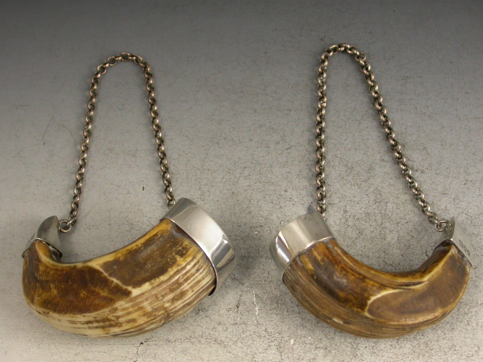 Pair Edwardian Silver Mounted Boars Tusk Wine Labels - Whiskey & Sherry