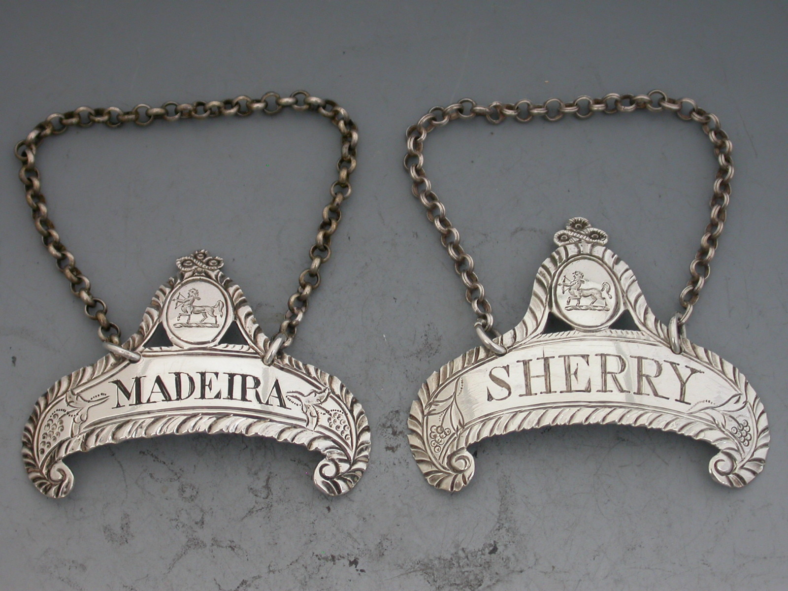 Pair George III 18th Century Silver Wine Labels 'Madeira & Sherry'