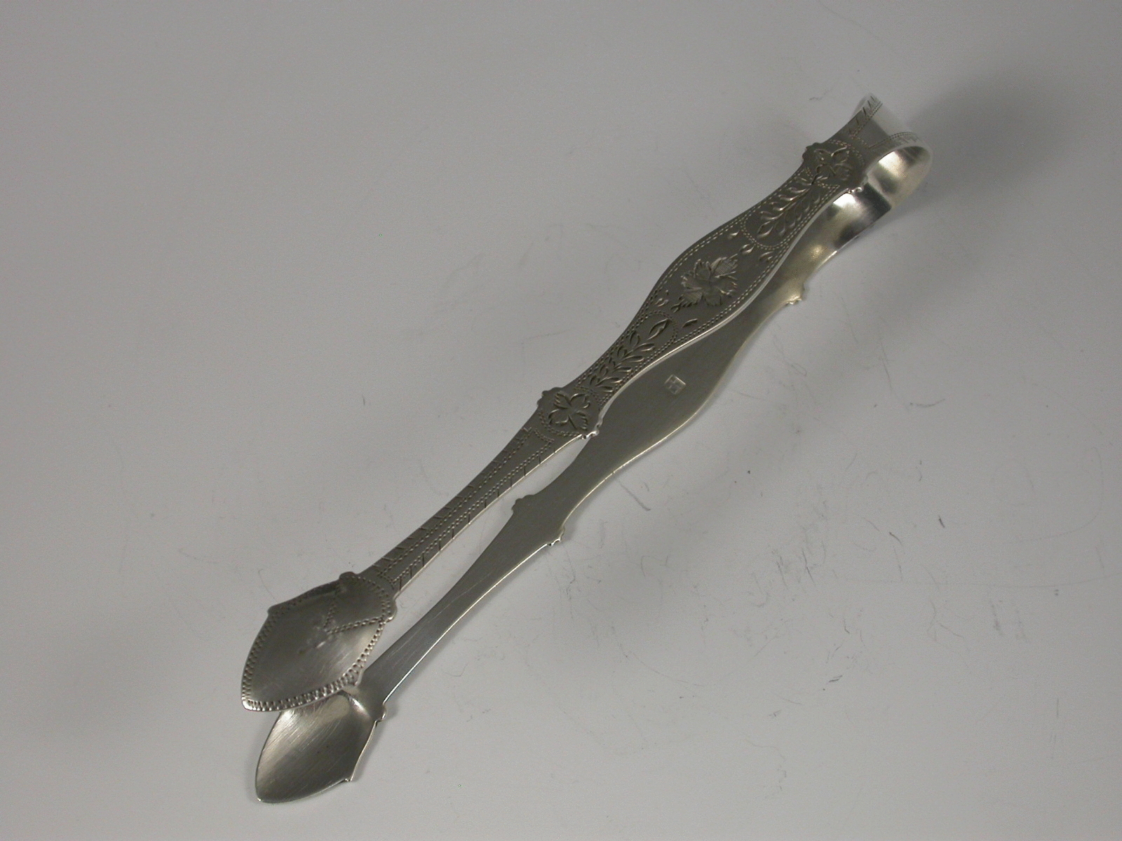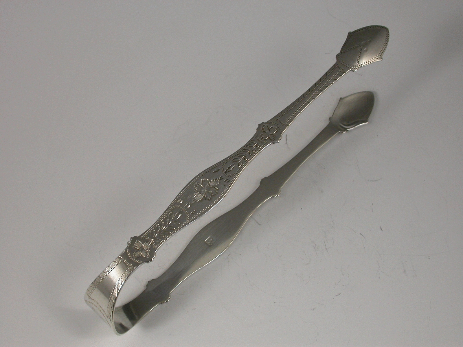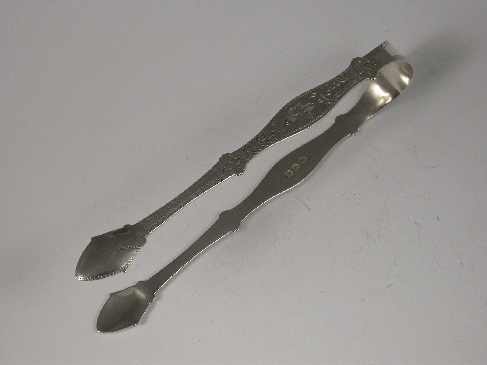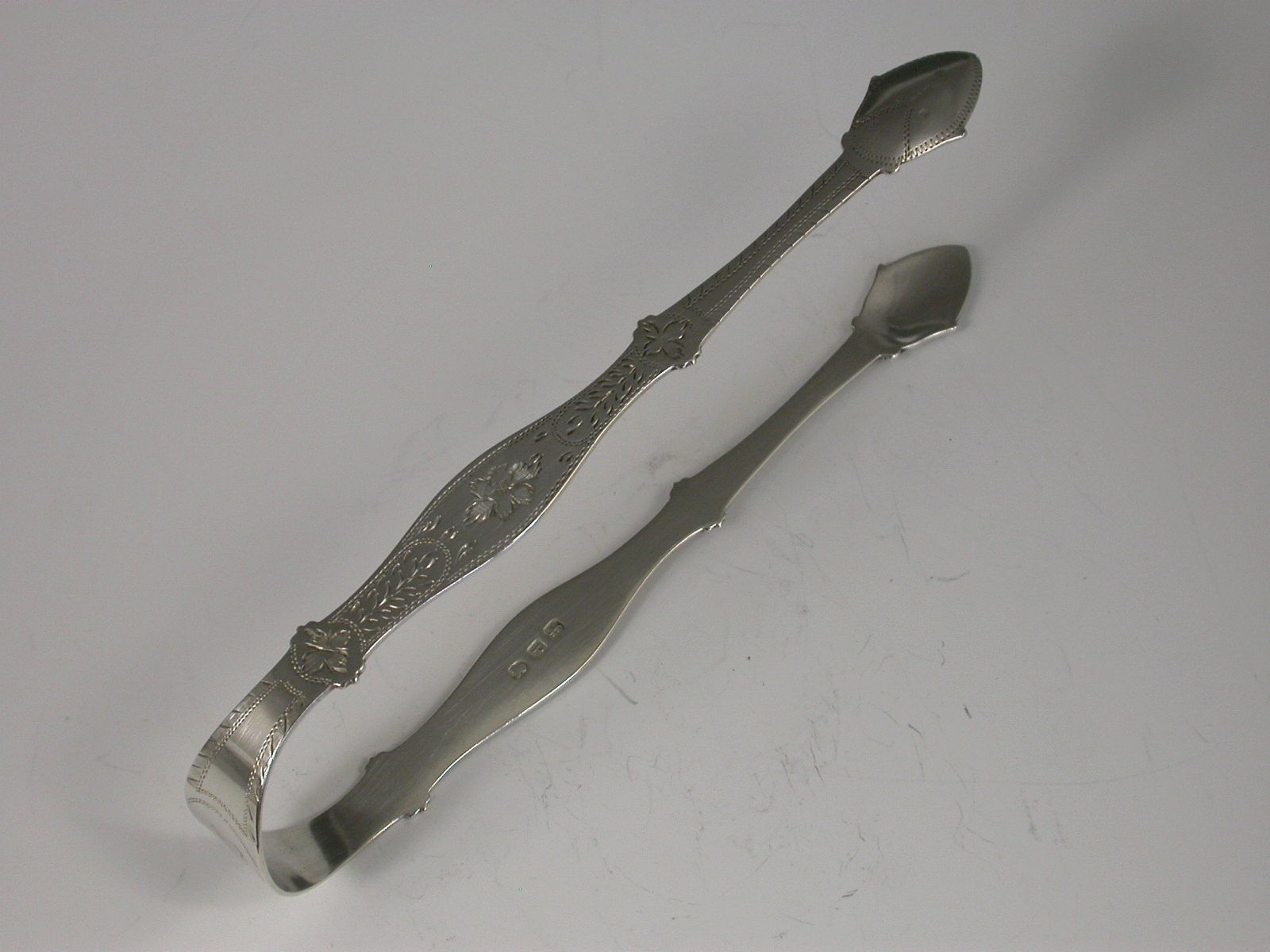 Pair George III Antique Silver Bright Cut Engraved Sugar Tongs