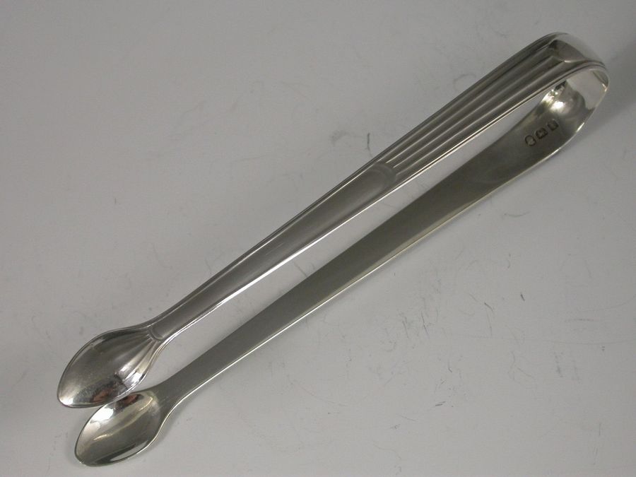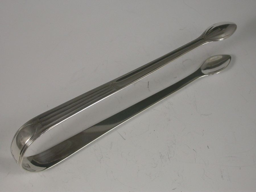 Pair George III Antique Silver Fluted Old English Sugar Tongs