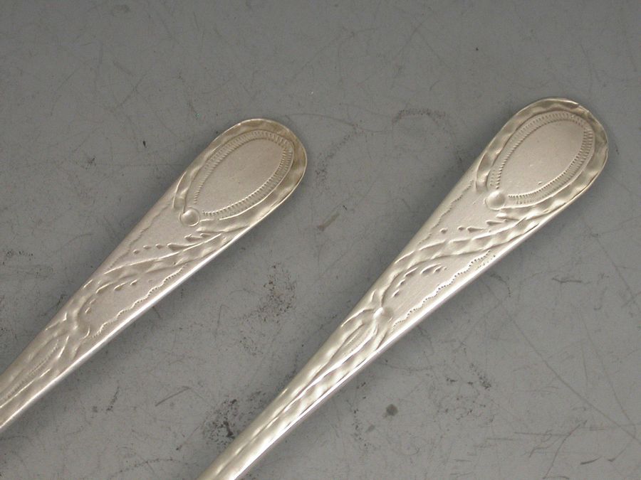Pair George III Bright Cut Engraved Salt Spoons - Incuse Head Mark