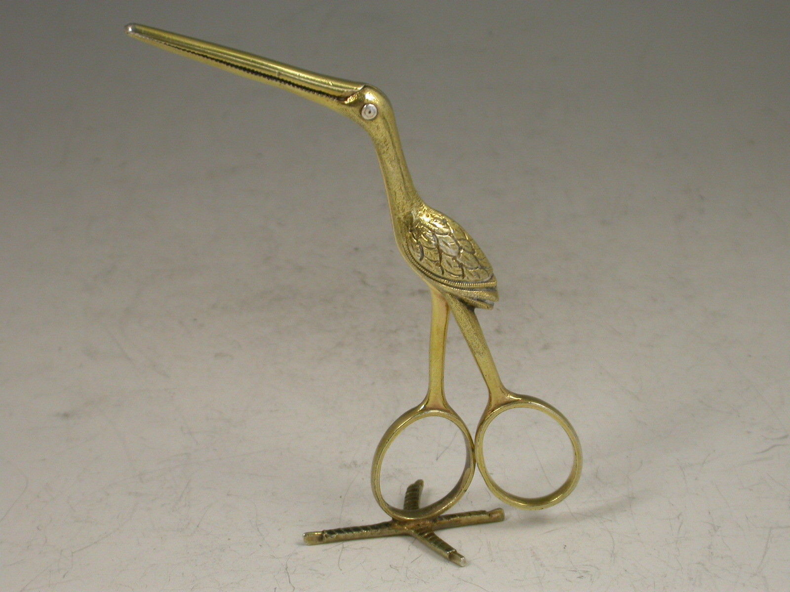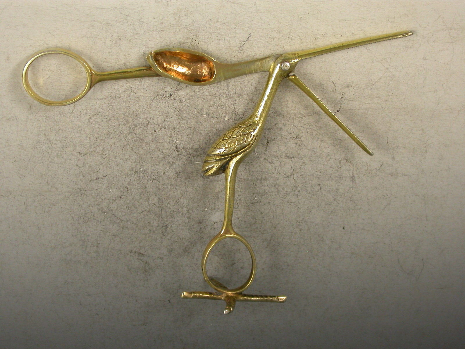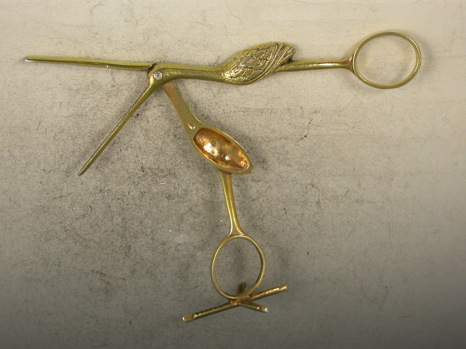 A good pair of George III cast silver gilt Ribbon Threaders made in the form of a Stork, standing on a four claw foot.