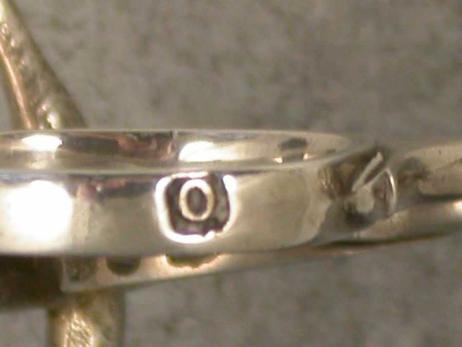 Pair George III Cast Antique Silver Stork Ribbon Threaders