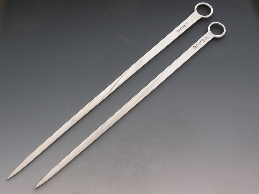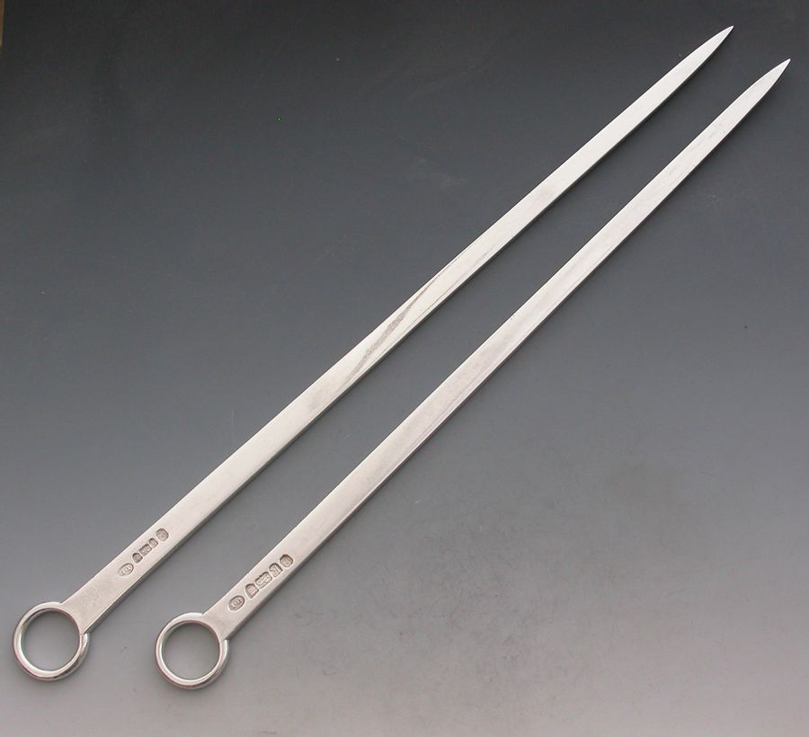 Pair George III Heavy Graduated Silver Meat Skewers - The Earl Camden