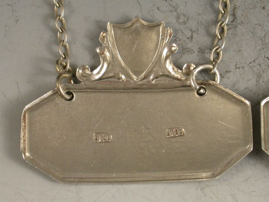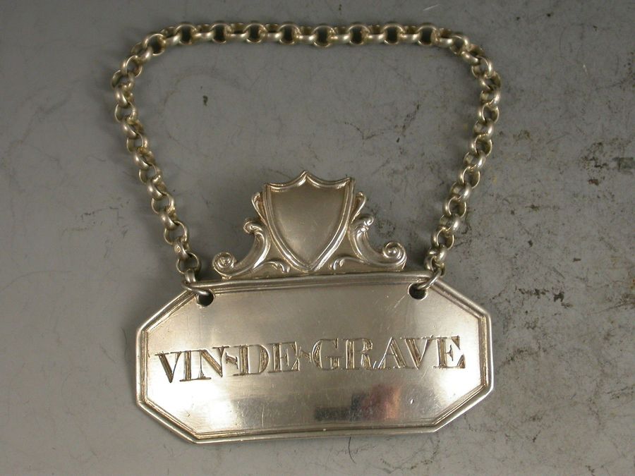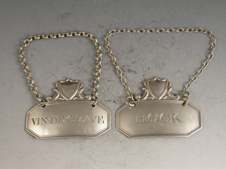 Pair George III Irish Silver Wine Labels 'Hock' & 'Vin De Grave'