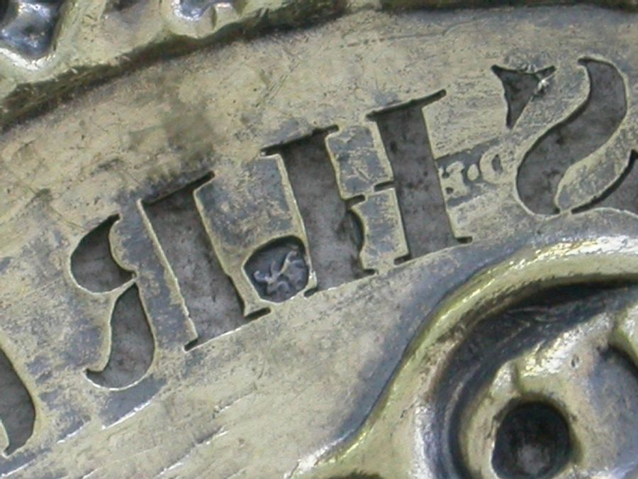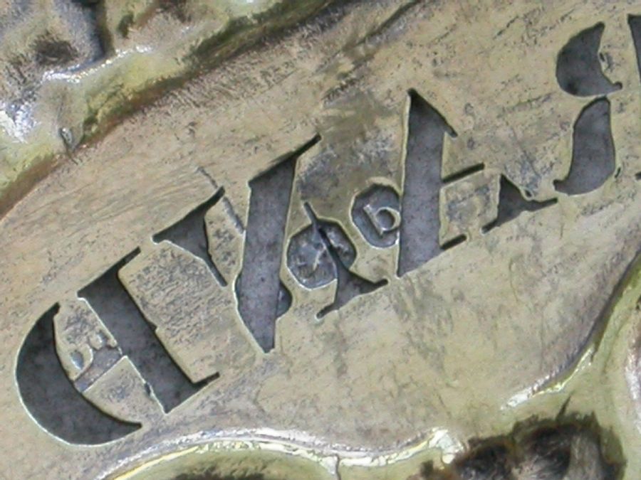 Pair George III Silver Gilt Leopards Head Wine Labels 'Shrub & Brandy'
