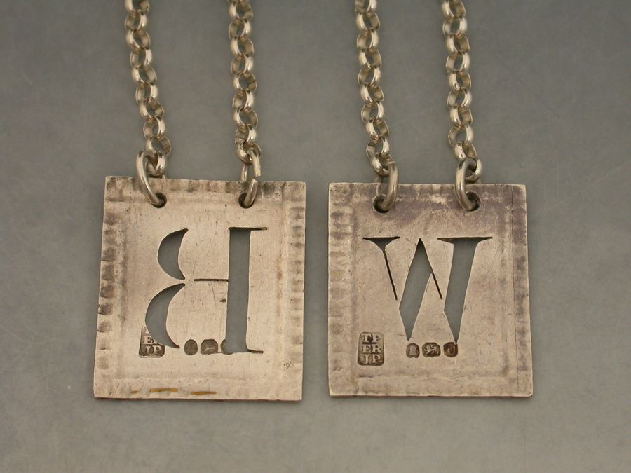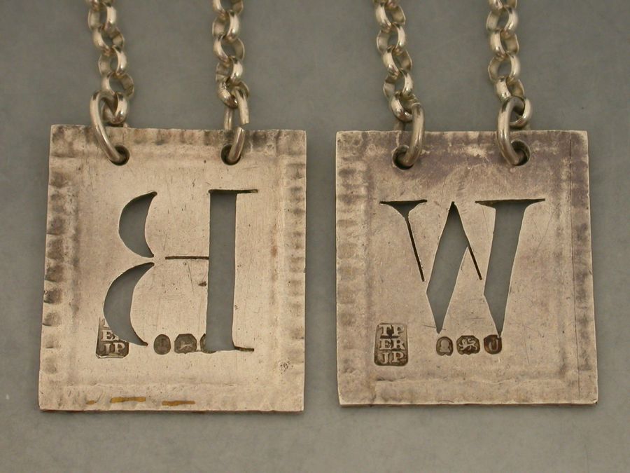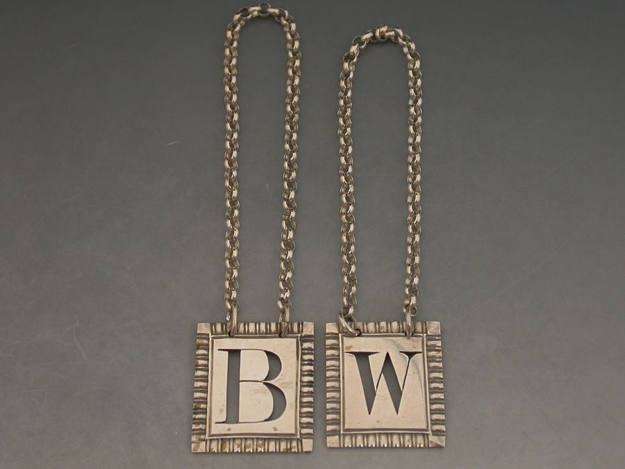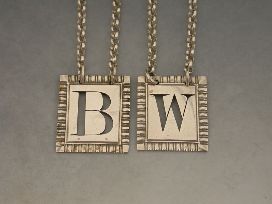 Pair George III Silver Postage Stamp Wine Labels ""B & W""